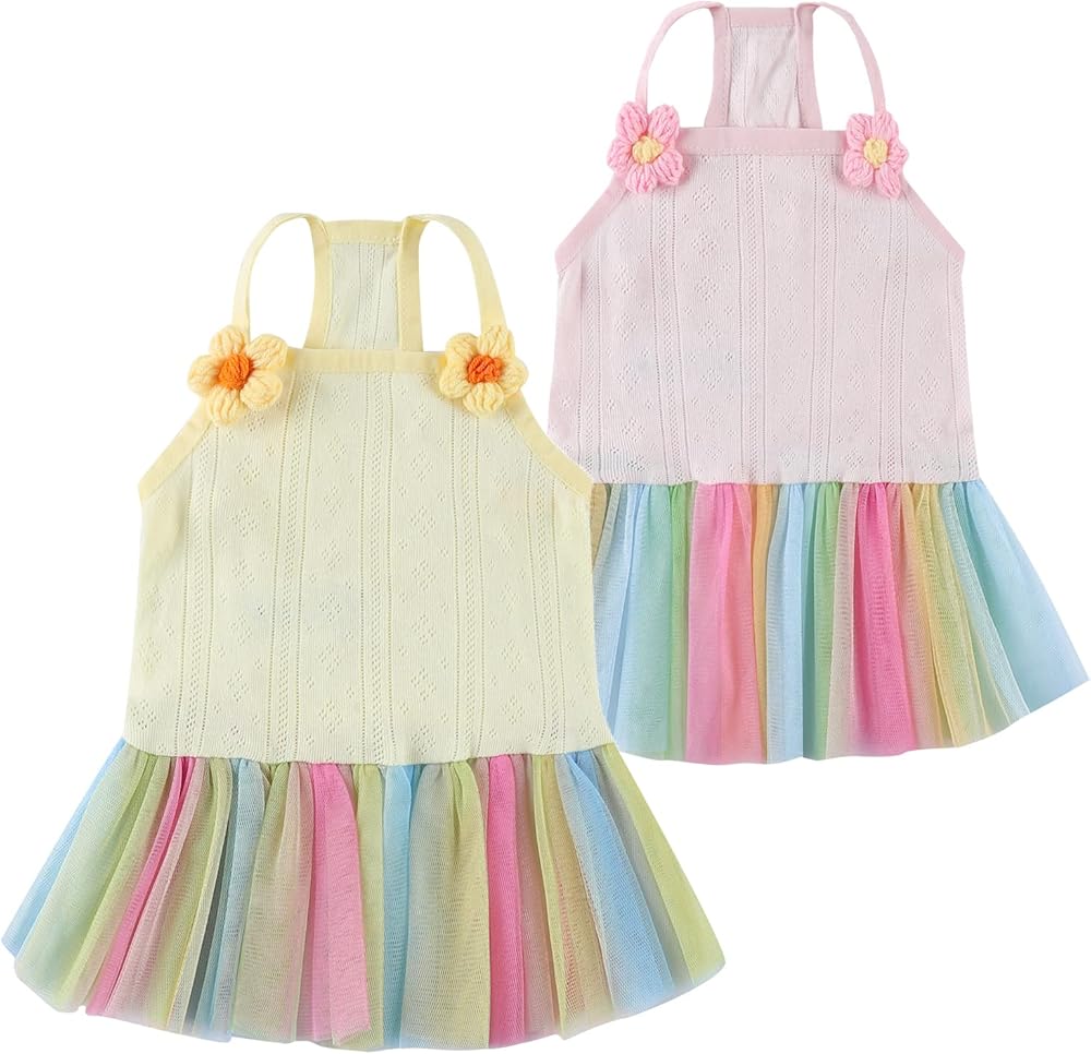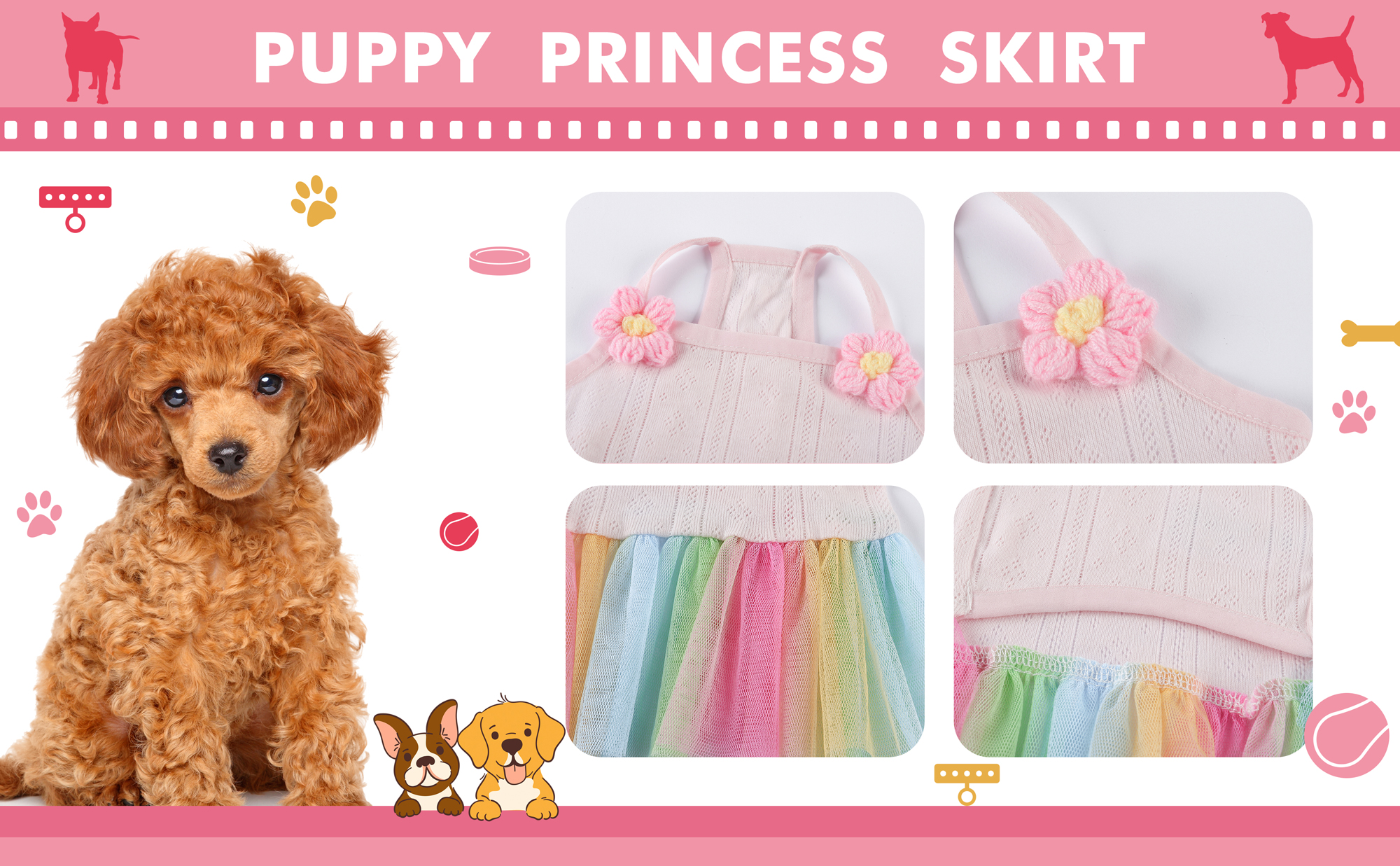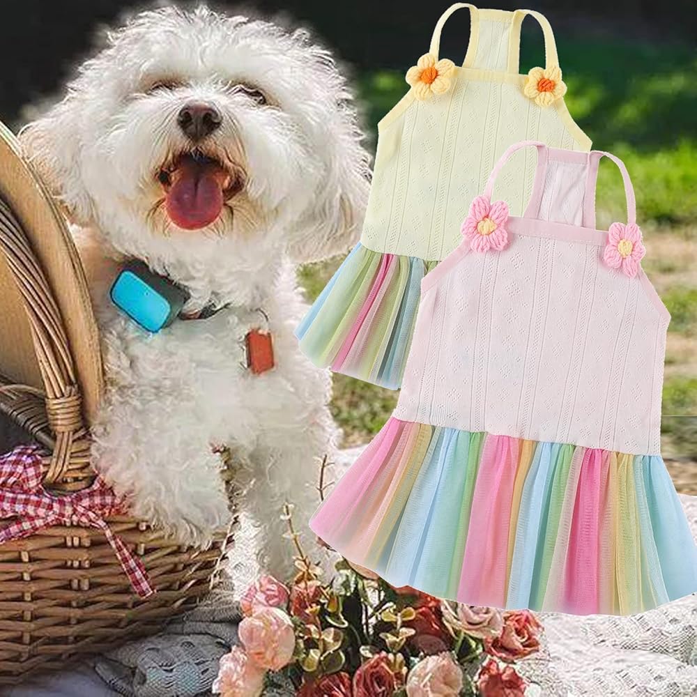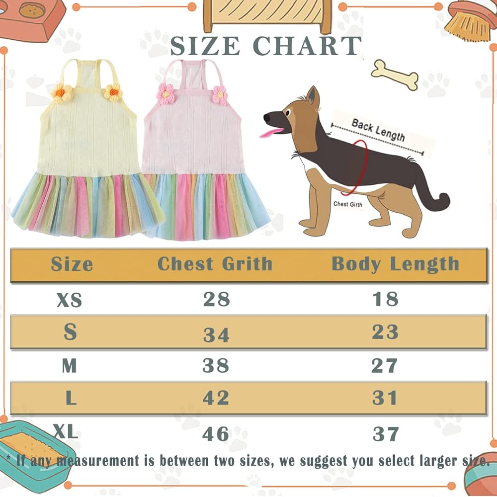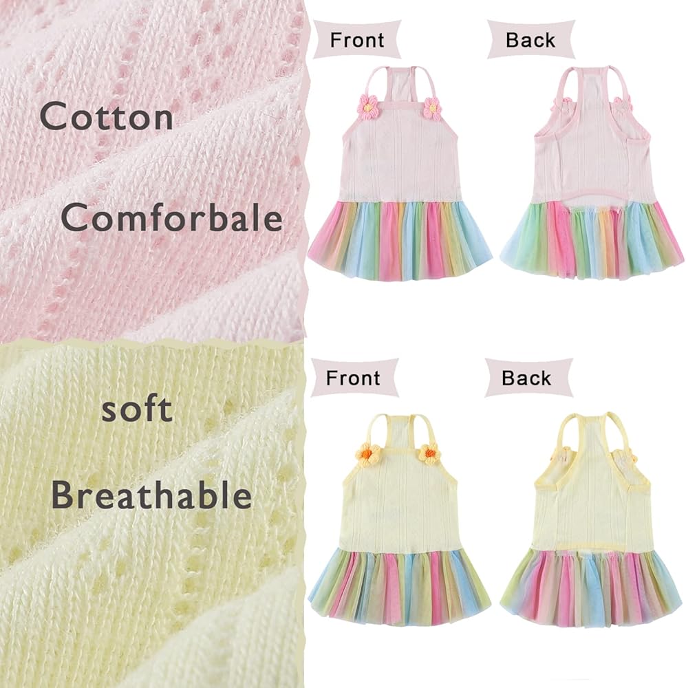 المناسبات: هذا الفستان الجميل ذو ألوان قوس قزح مثالي لحفلات الزفاف والحفلات وحتى جلسات التصوير الفوتوغرافي. نقدم لكم فستان الحيوانات الأليفة المثالي لصديقك ذو الفراء! مصنوع من قماش خفيف الوزن وجيد التهوية، سيبقى حيوانك الأليف مرتاحًا طوال اليوم.