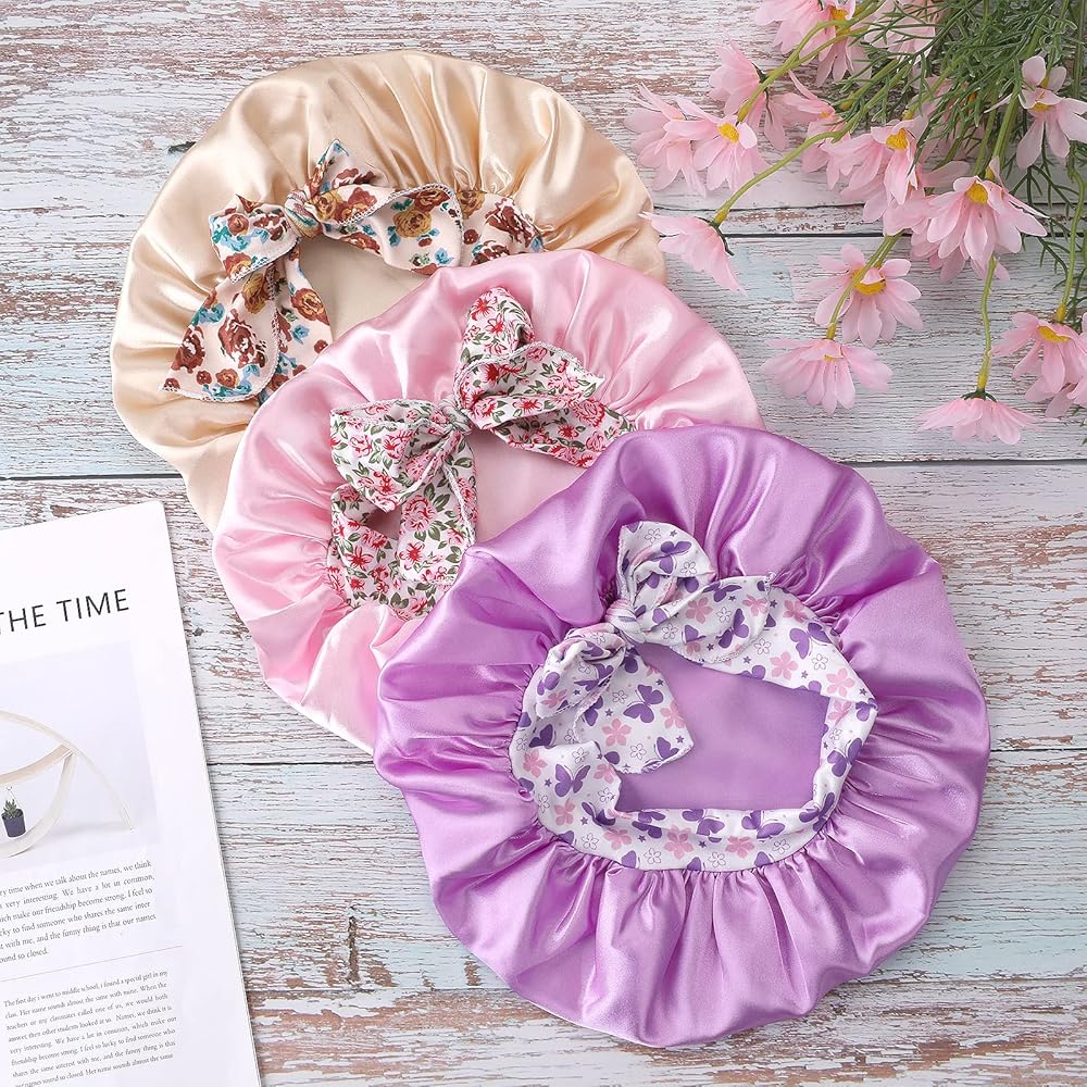 Kids Satin Bonnet: you will get 3 pieces of kids satin bonnet in 3 different styles and colors, sufficient quantity for satisfying your kids daily using and replacement needs.