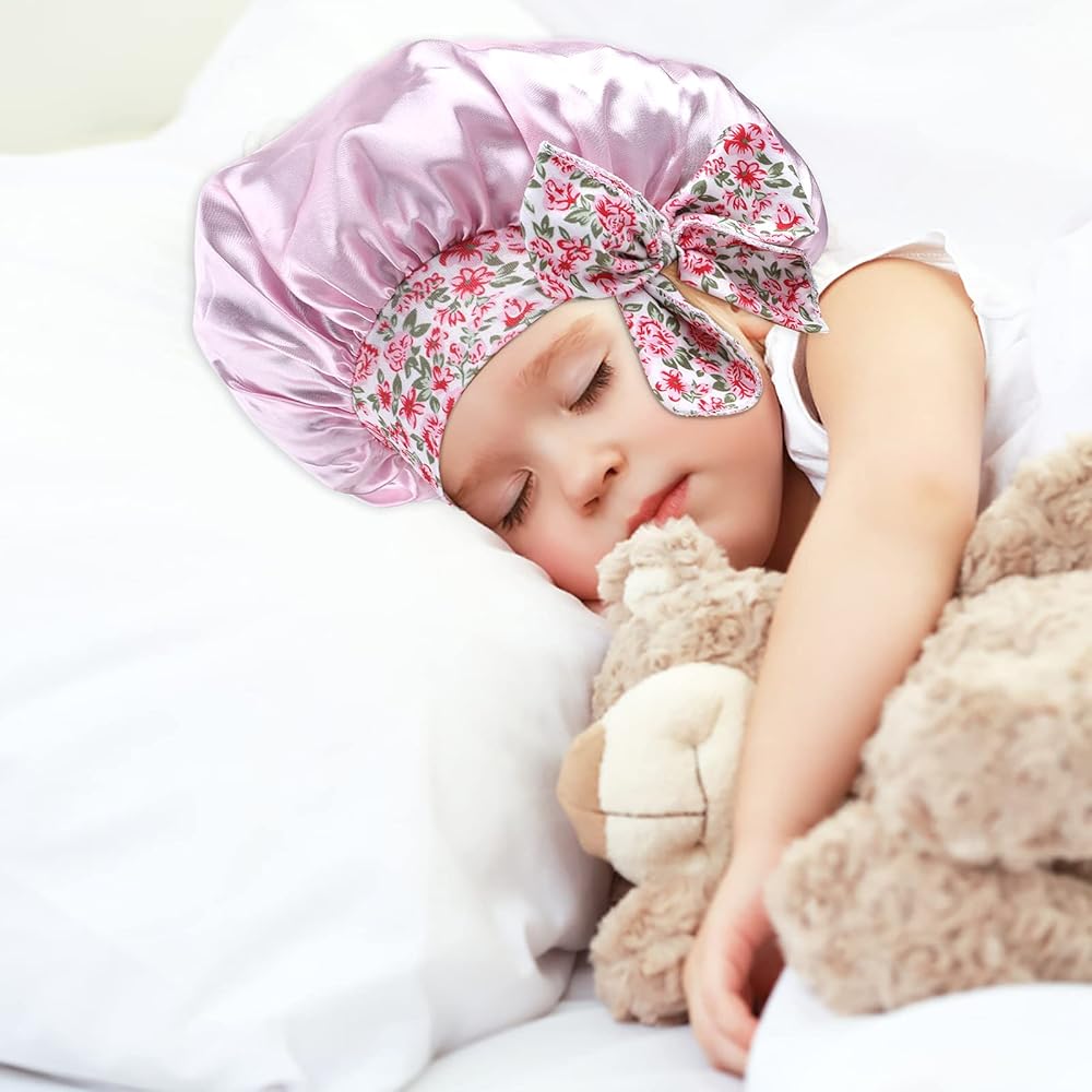 Beautiful Appearance: the most part of satin sleep cap adopts solid color, fresh and attractive, and the elastic bands are designed with different flower patterns, making your kids look cute.