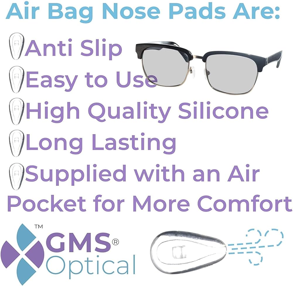 • » توفر وسائد الأنف اللولبية من جي ام اس Optical Air Bag راحة من المستوى التالي. يساعد السيليكون المرن على منح نظارتك ملاءمة أكثر أمانًا وراحة، لأن عينيك تستحق الأفضل!