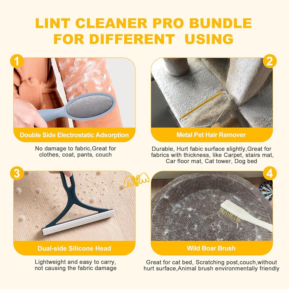 🐾【 4 PACK Remover, Solid & Durable 】This upgraded 4PCS pet hair remover included: 1pcs double sided lint brush + 1pcs metal dog/cat hair remover + 1pcs silicone fur remover + 1pcs natural Wild boar brush, different tools for slightly different cleaning effects. 4 pack deep cleaning tools built to last for years of daily use, suitable for heavy duty use.