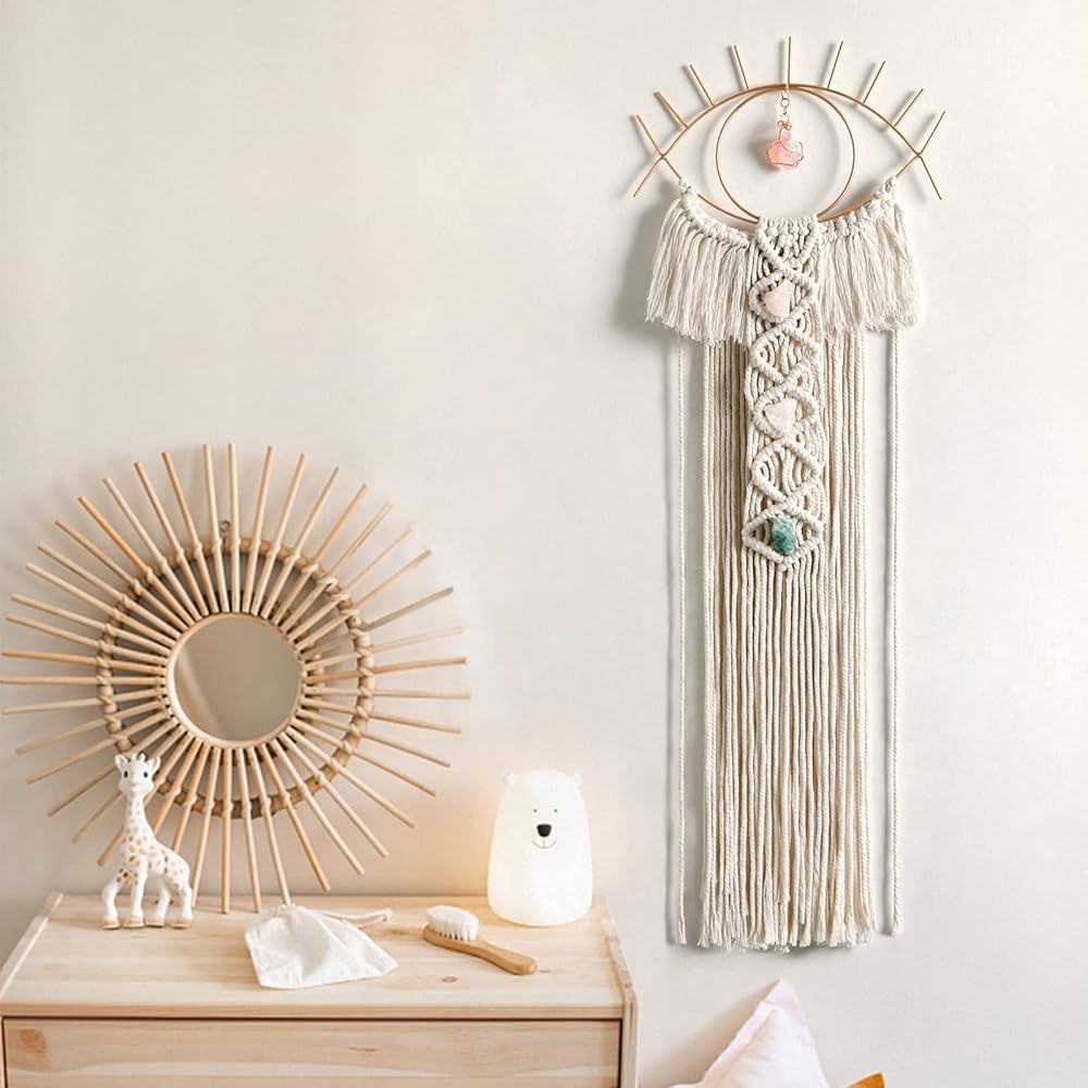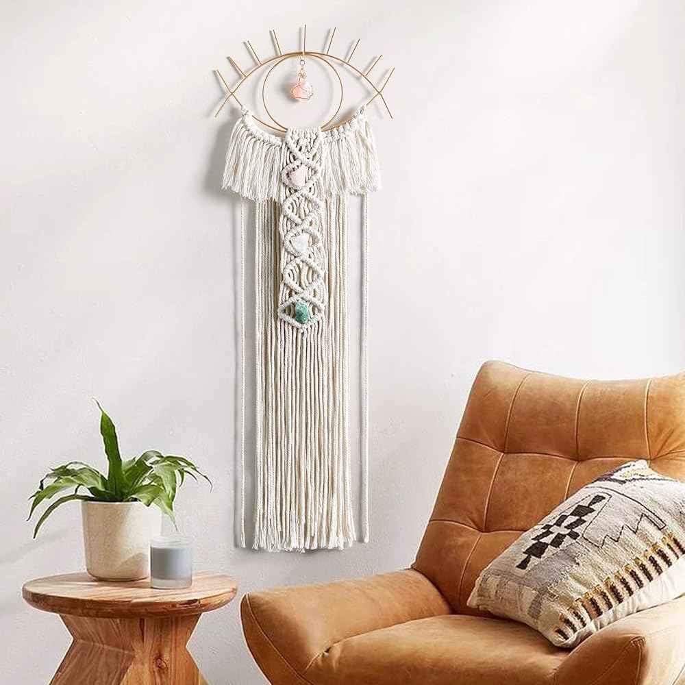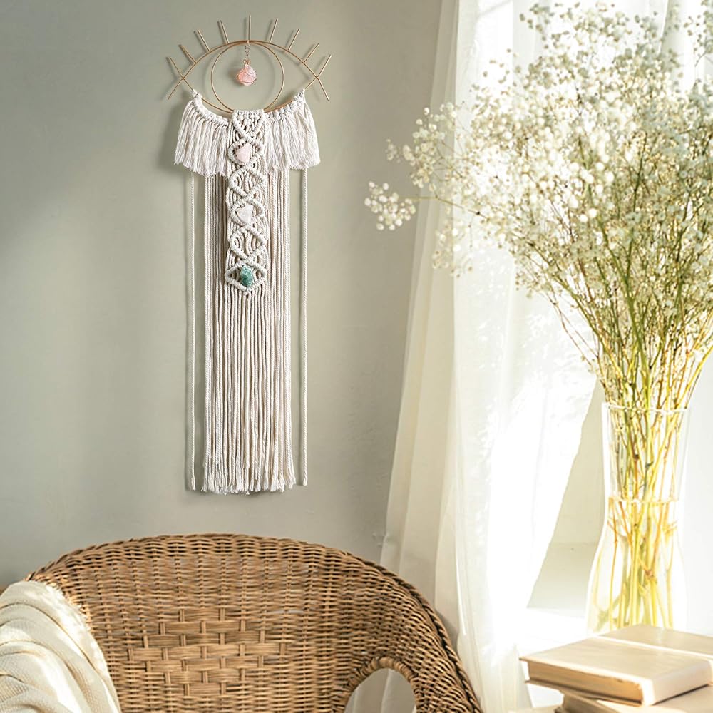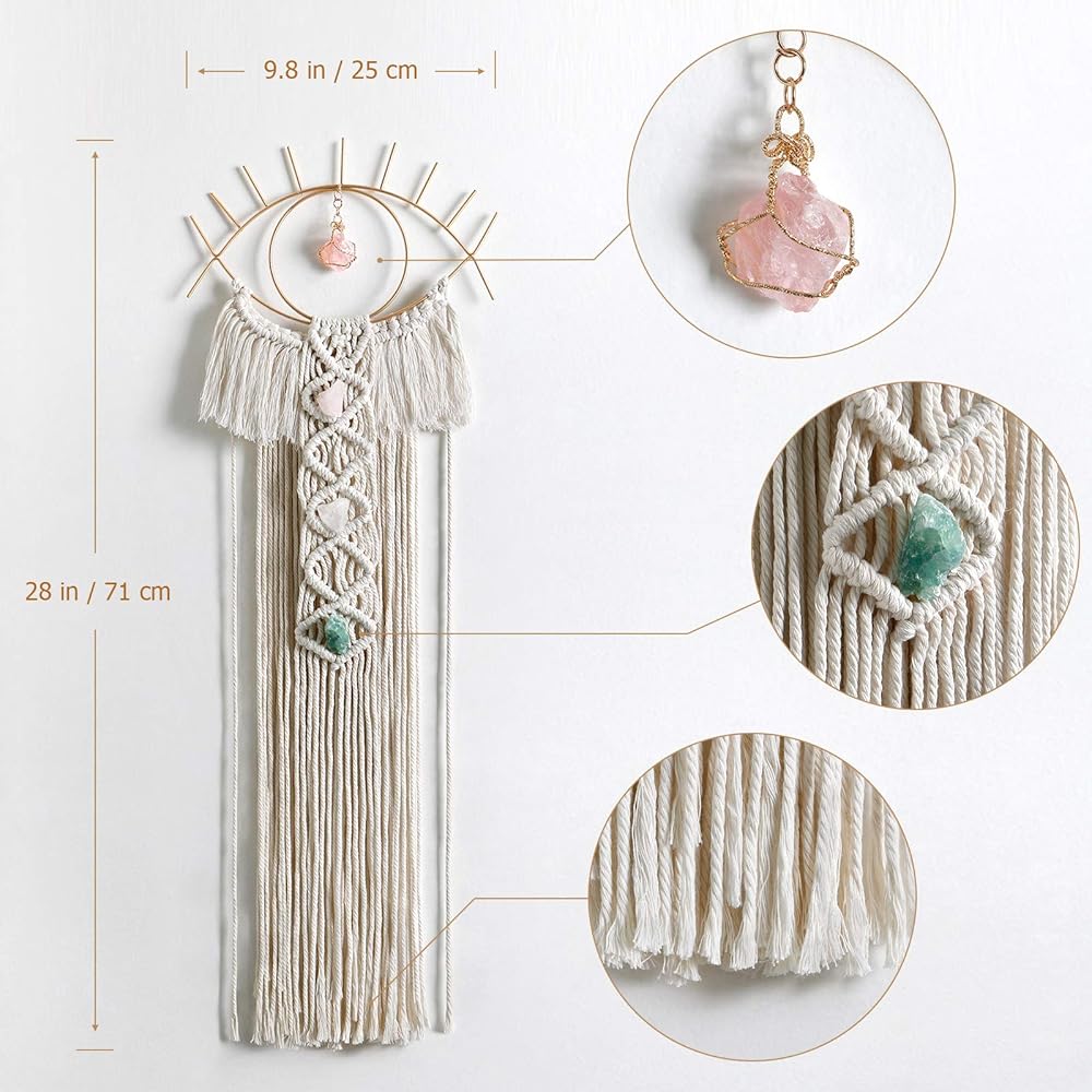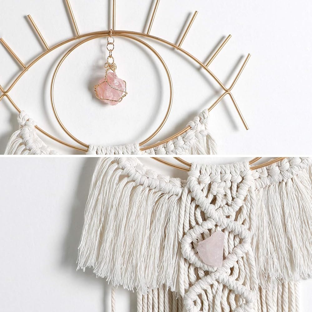 ★ 【مادة تعليق على الحائط من المكرمية】: مصنوعة من سلك قطني طبيعي ناعم، حجر كريستال، عين معدنية شريرة. تصميم العين الشريرة الجذاب والحجر الكريستالي يضفي مظهرًا جذابًا لخلق جاذبية بصرية.