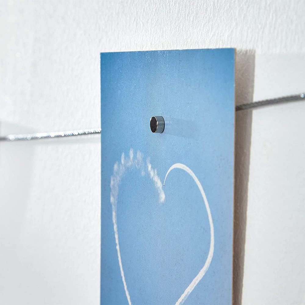 Strong and Durable: This Picture Hanging Wire is made of metal steel (without plastic), durability and strength; This magnetic photo cable is stronger than normal braided cable, ideal for hanging photos for a long time.