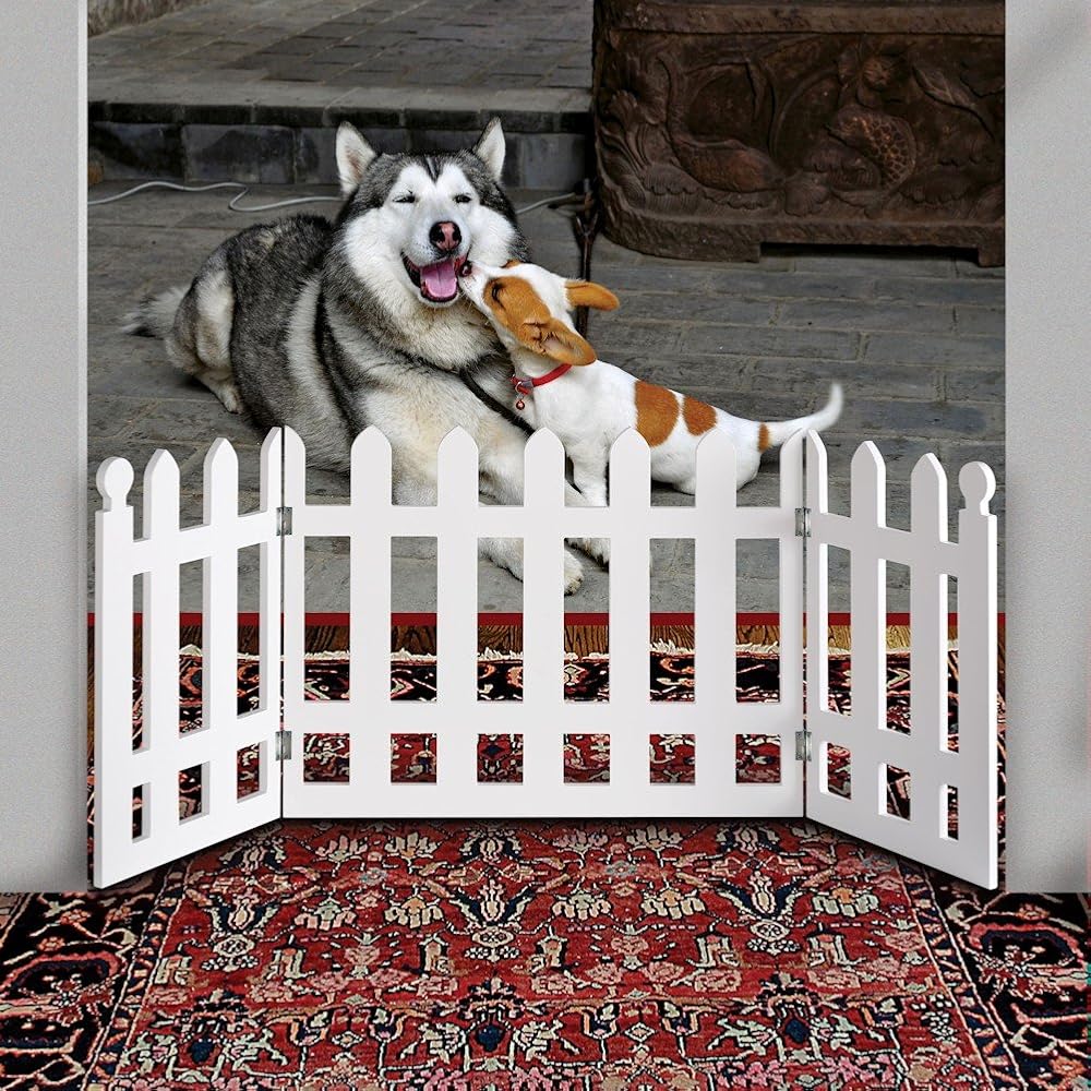 - سياج أبيض قابل للطي للحيوانات الأليفة مقاس 19 انش ارتفاع × 0. عرض 5 انش، يمتد إلى طول 42 انش