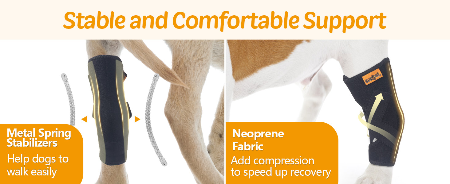 🐶 جدد شباب كلبك - تحتوي دعامة ساق الكلب Comfpet على زنبرك معدني على كل جانب لتوفير الدعم والحماية لأرجل كلبك الخلفية، ومساعدة الكلاب على المشي بسهولة أكبر مع الالتواءات والإصابات والتهاب المفاصل والروماتيزم.