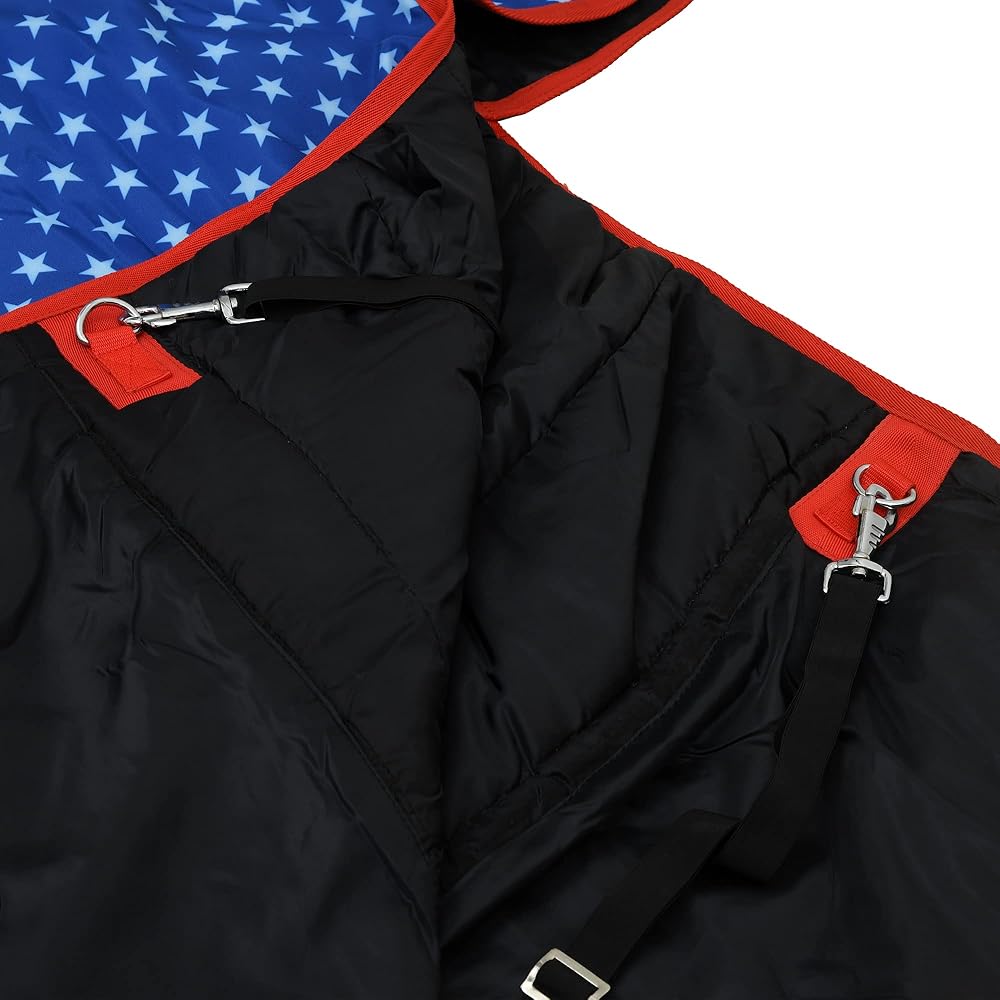 SIE Horse Winter blankets are made with 250 GSM polyfill. The upper fabric is made of Nylon waterproof 1000 Denier which prevents horses from cold and water.