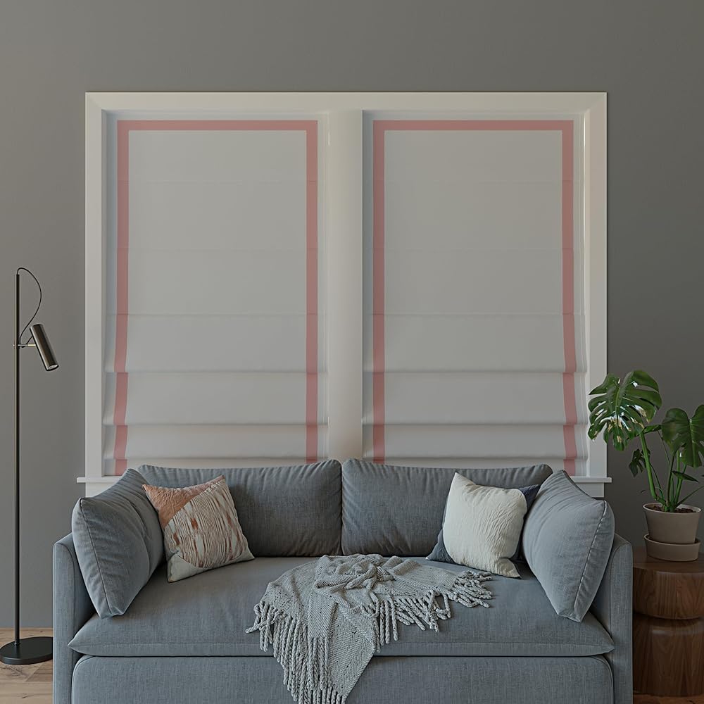 Sun Zero Marline شريط حدودي وردي شريطي 100% ظل روماني معتم بدون سلك، 31 بوصة × 64 بوصة، وردي/أبيض