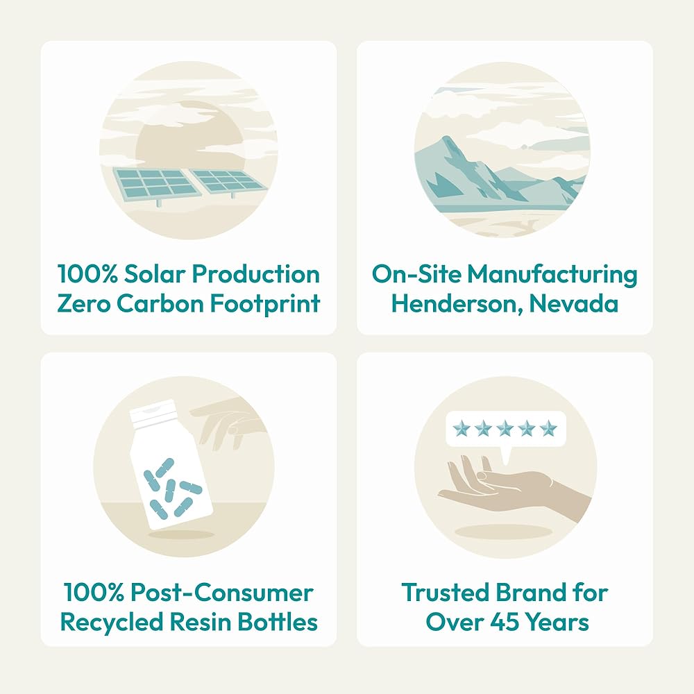 أخلاقية وصديقة للبيئة. بصمة قدم خالية من الكربون - تلتزم منشآت ProCaps بشكل فريد بصحتك وصحة الكوكب، وهي تعمل بالطاقة الشمسية بنسبة 100% مع بصمة صفرية من الكربون وحاصلة على شهادة LEED GOLD للمباني الخضراء. جميع زجاجات ProCaps مصنوعة من راتينج ما بعد الاستهلاك قابل لإعادة التدوير بنسبة 100%. بالإضافة إلى ذلك، يعد Andrew Lessman وProCaps أكبر متبرعين بفيتامينات ما قبل الولادة في العالم (تم التبرع بأكثر من مليار كبسولة حتى الآن). ProCaps، الاختيار المستنير للمكملات الغذائية.