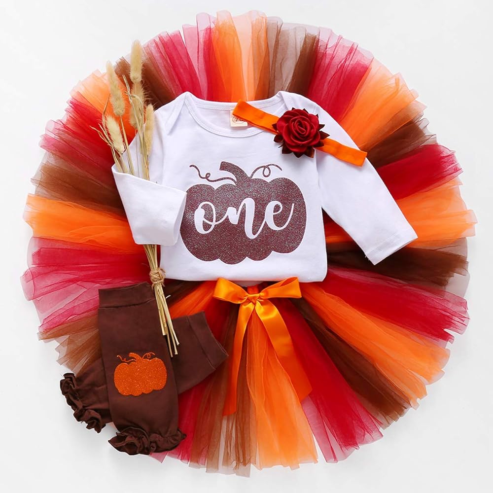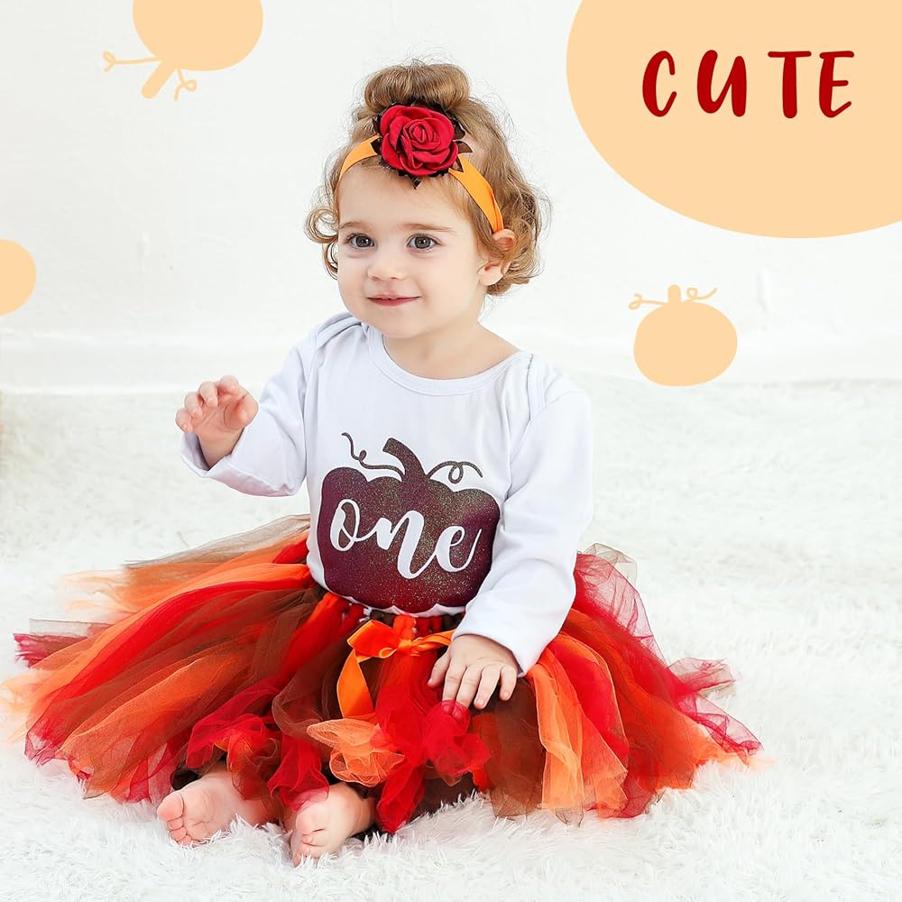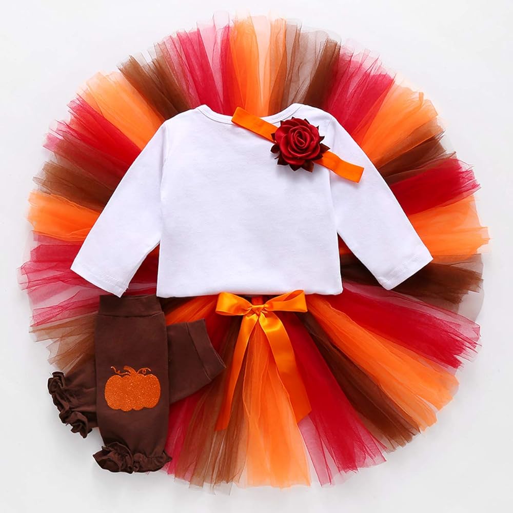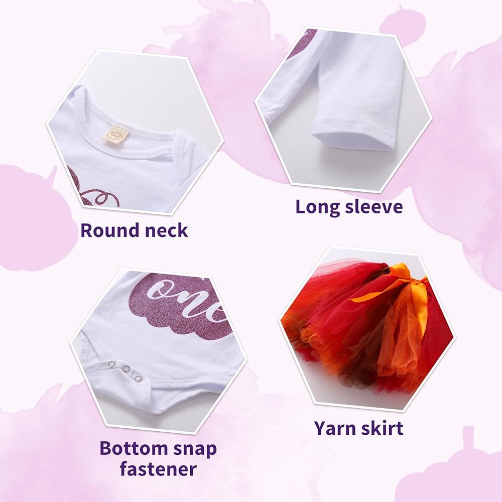 🧡تصميم لطيف: بدلة للجسم بطباعة يقطين واحدة، تنورة توتو مضفرة متعددة الألوان، احصل على المزيد من الإطراء لأميرتك مع هدية العطلة المثالية.