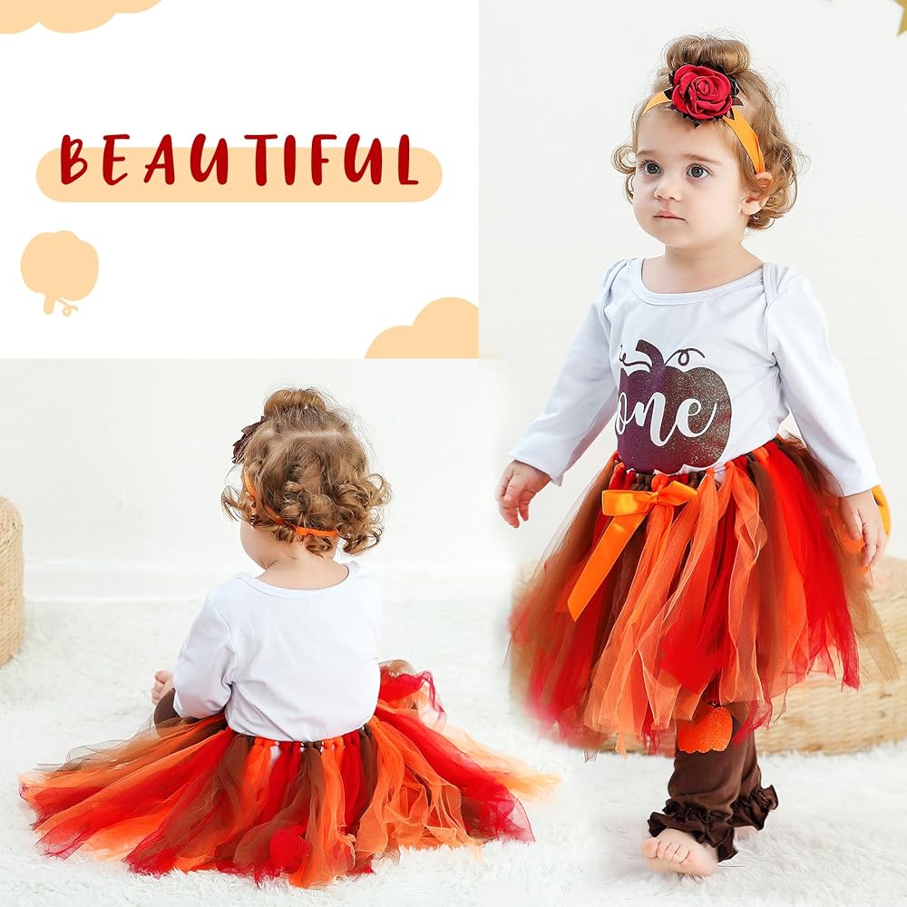 🧡هدايا رائعة: القطن والتول. ناعمة ومريحة وصديقة للبشرة. مجموعة تنورة عيد ميلاد اليقطين الرائعة للفتيات الصغيرات.