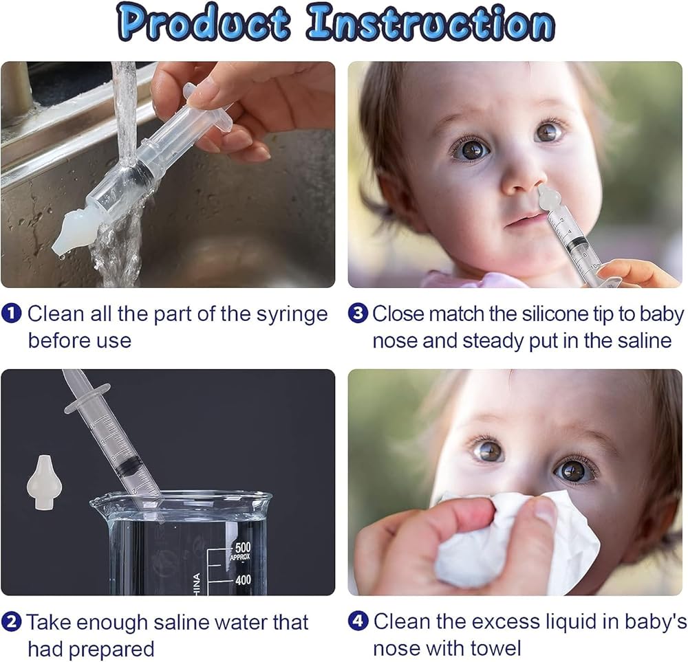 Quality&Safe Material - The product is intend for baby use,so we use high quality syringe with food grade quality silicone tip to protect baby nasal condition.