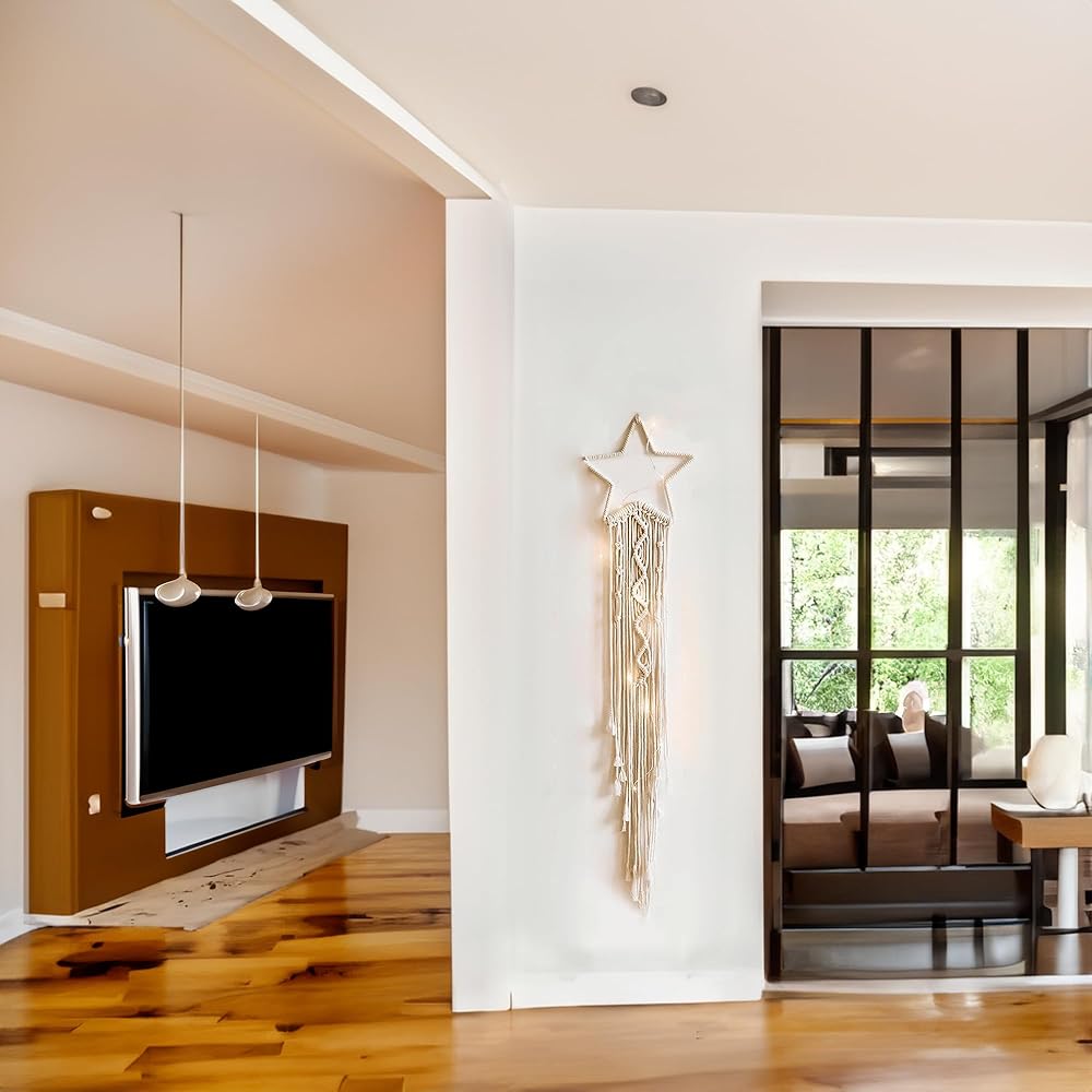 🌟【ديكور منزلي أنيق】قم بتحويل أجواء مساحتك من خلال ديكورات المنزل الرائعة لدينا. تصور جدرانك مزينة بصائد الأحلام السماوي هذا المصنوع بشكل فريد، مما يضفي لمسة من الأناقة على أي غرفة. سواء كانت غرفة نومك، أو مساحة مريحة لطفلك، أو حتى ملاذًا في الحديقة، فإن صائدة الأحلام المصنوعة يدويًا لدينا هي الخيار الأمثل لرفع مستوى البيئة المحيطة بك.