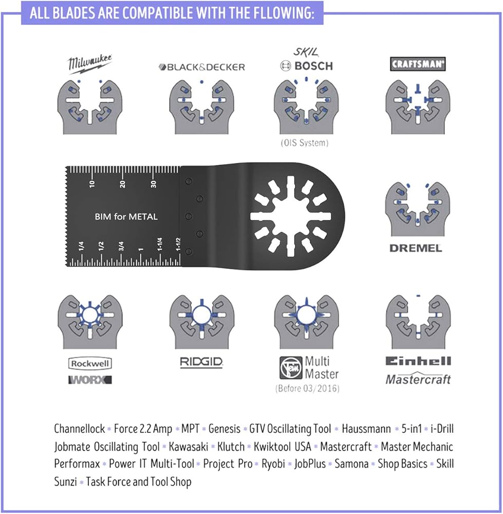 • 【COMPATIBILITY】 Not compatible with blade quick release or quick change tools, not compatible with Black Decker BD Matrix, Rockwell Sonic rafter, Dewalt DCS355, MM45, WORX 20V Max, Worx wx682.9.