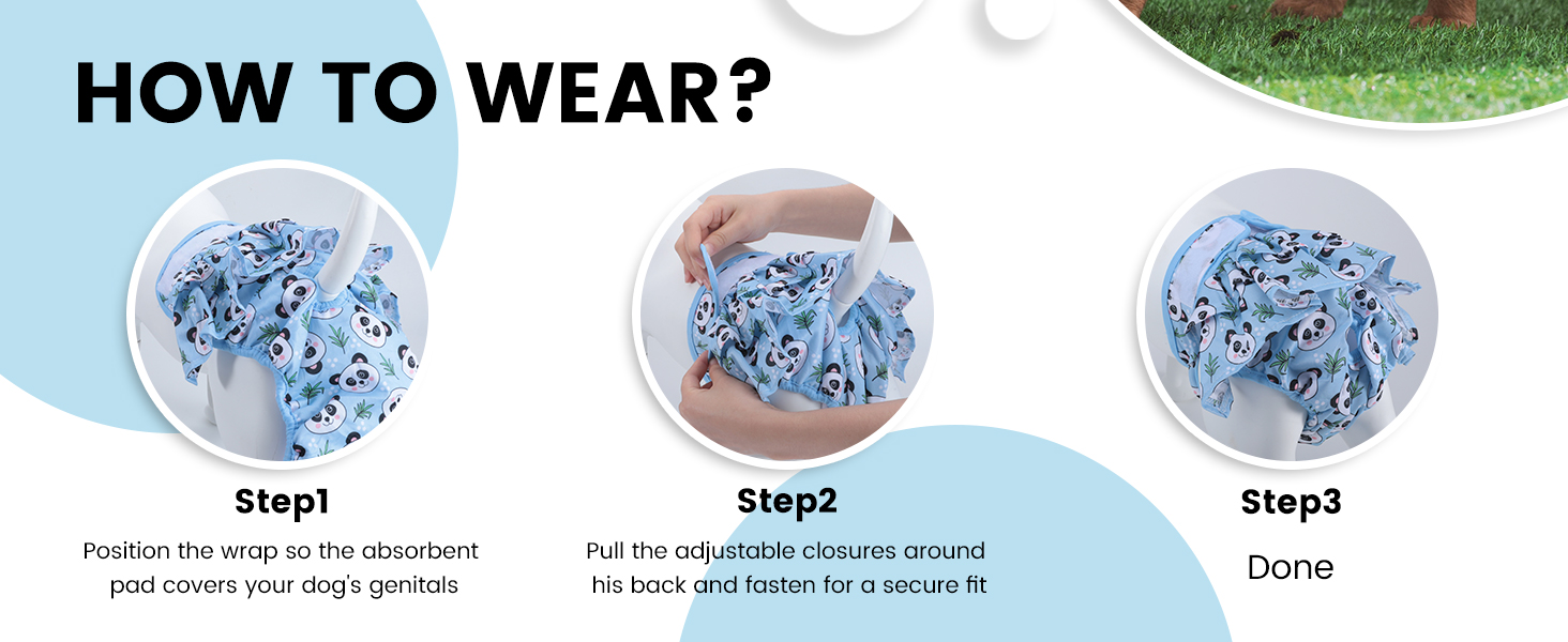 مواد عالية الجودة: حفاضات الكلاب سهلة الارتداء والخلع مصنوعة من مواد ناعمة ومتينة تتحمل الغسيل المتكرر والاستخدام اليومي، مع مثبتات فيلكرو أوسع لحرية الحركة وسهولة الانزلاق.