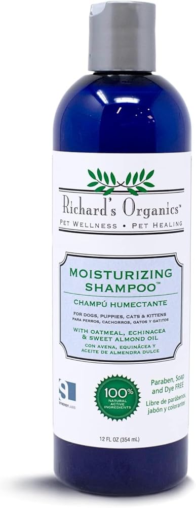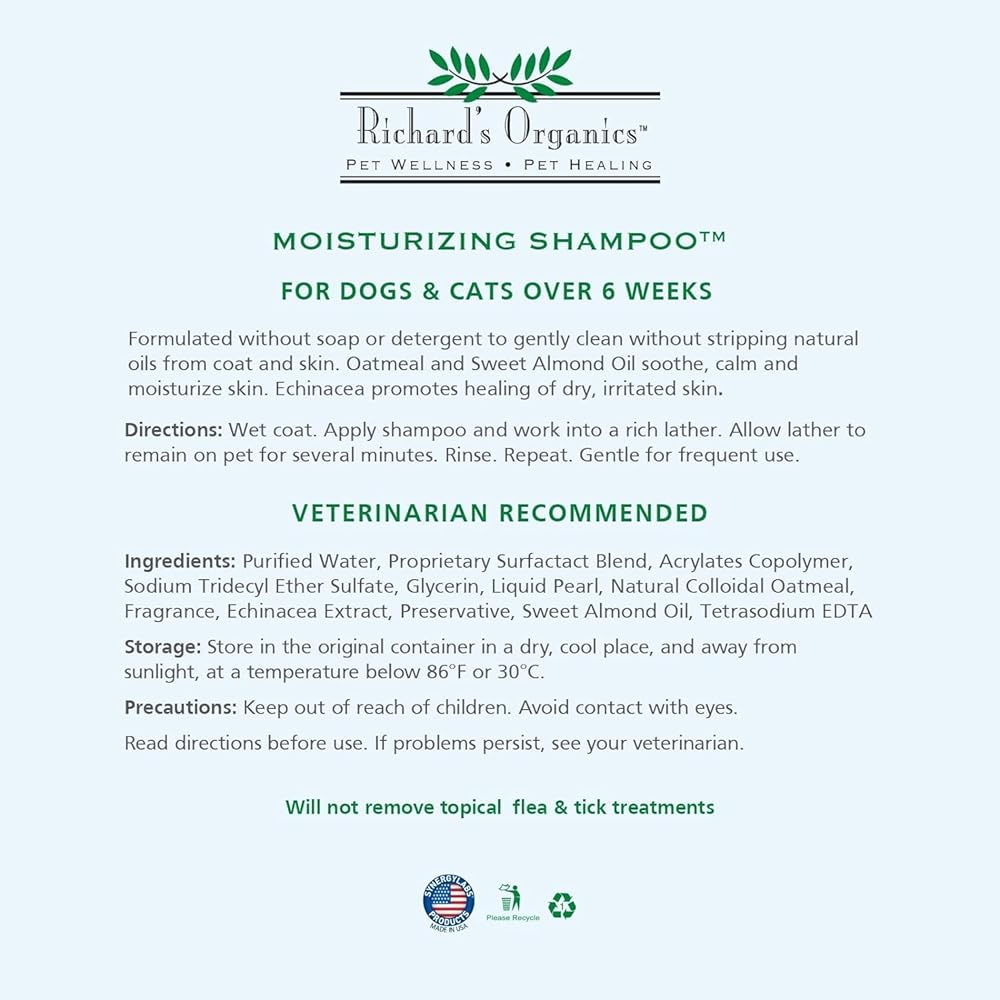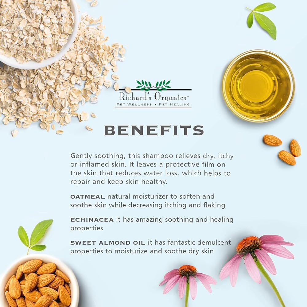 Richards Organics Moisturizing Shampoo with Oatmeal, Echinacea Sweet Almond Oil soothes and protects dry, itchy and inflamed skin. Leaves protective film on the skin that retards water loss and