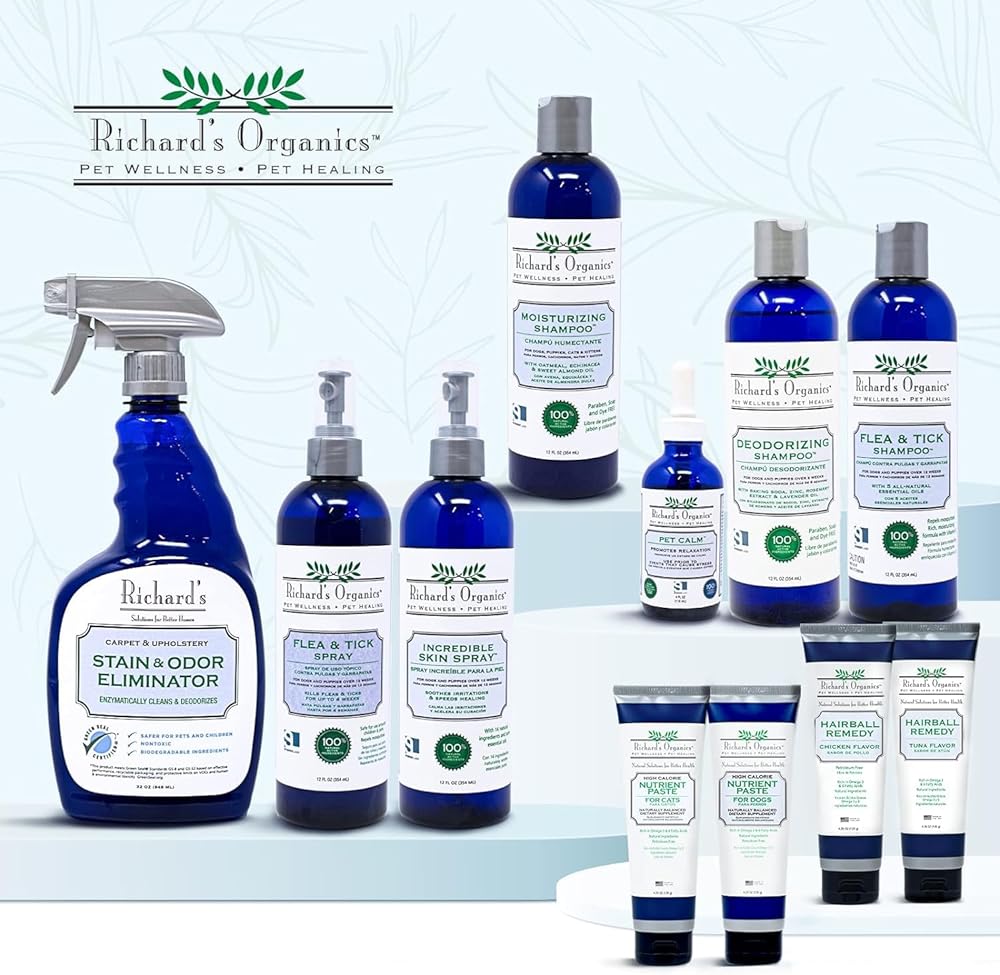 • يرطب ويلطف - يحتوي شامبو الكلاب المرطب من ريتشاردز أورجانيكس على دقيق الشوفان والشيناسيا وزيت اللوز الحلو لترطيب وتهدئة وتنظيف بشرة كلبك الجافة والملتهبة والحكة وتعزيز الشفاء.