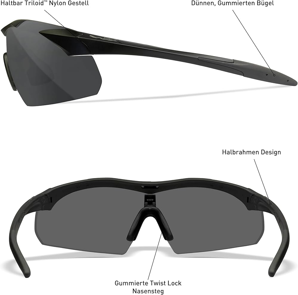 Our Wiley X VAPOR features thin temples, changeable lenses, and an adjustable nose piece for lightweight comfort. Meets MIL-PRF-32432 ballistic safety standards for maximum protection.