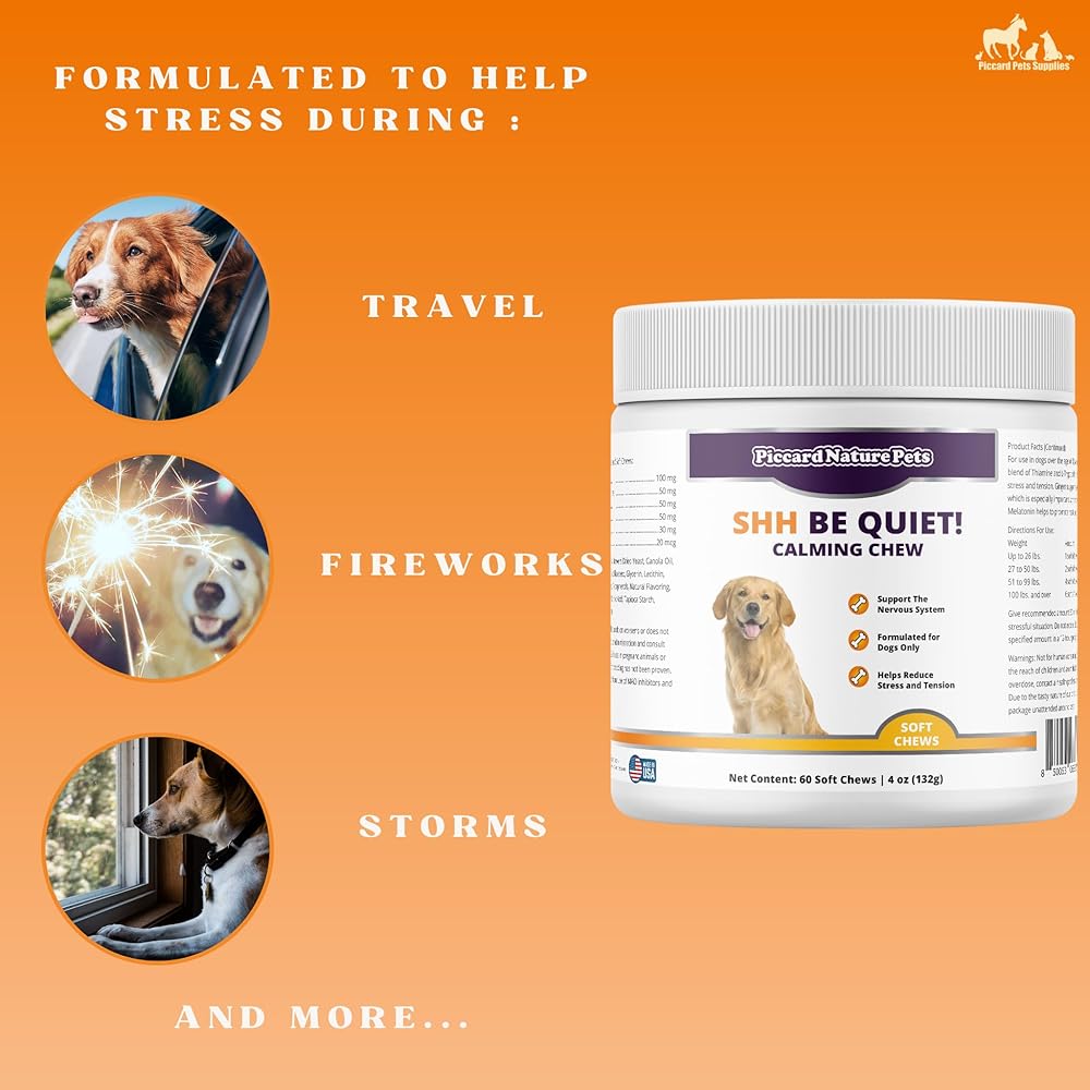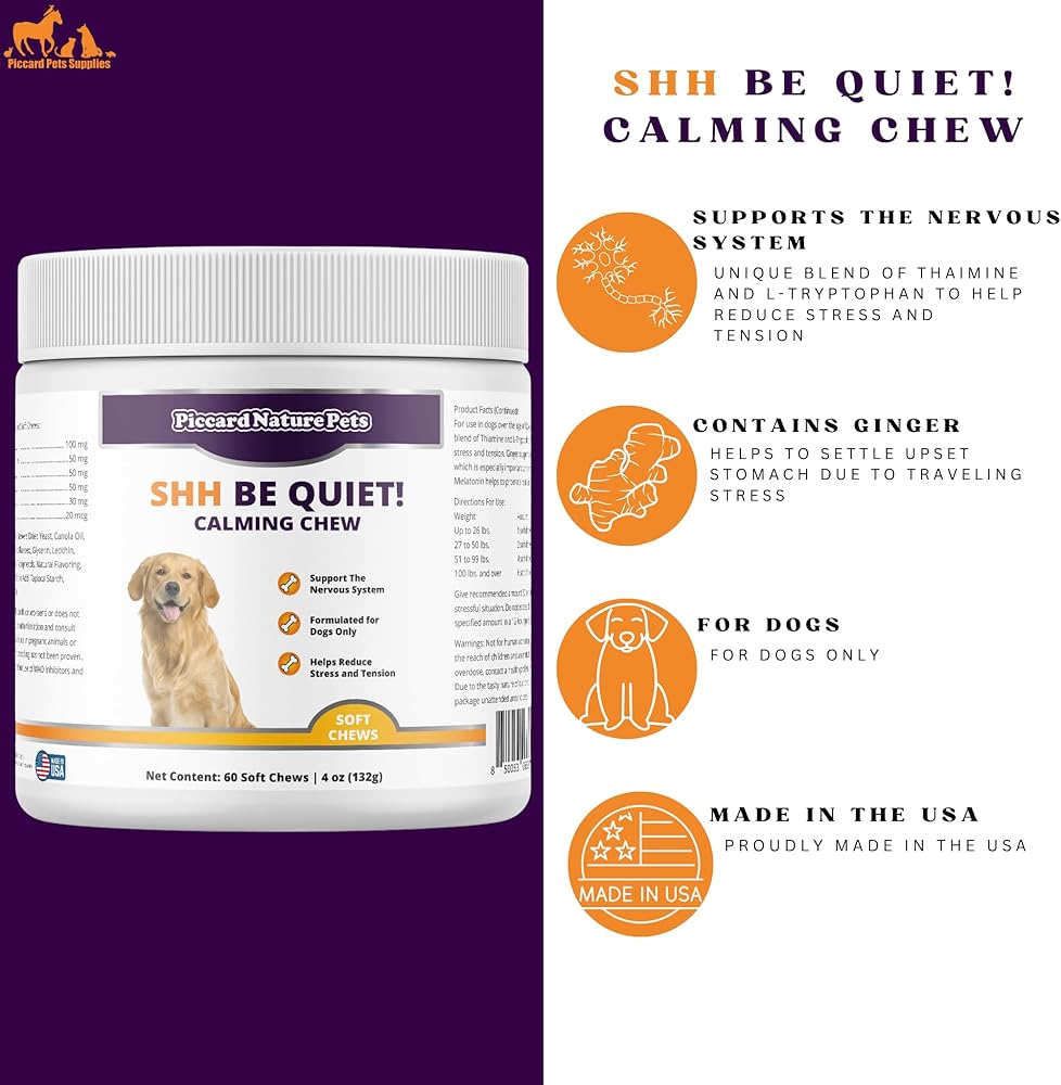 PiccardNaturePets Shh Be Quiet Calming Aid Dog ملحق 60 مضغ ناعم