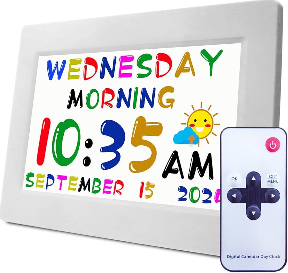 ✅【شاشة مطورة مقاس 8 بوصات مع مواد متينة】توضح ساعة تاريخ اليوم عالية الدقة مقاس 8 بوصات كبيرة 1024x768 HD الوقت والتاريخ بوضوح باستخدام أيقونات Sun☀️Moon🌙، بدون اختصارات مربكة! تم تصميم ساعة الخرف لتحمل الاستخدام اليومي، مما يجعلها مساعدة موثوقة للأفراد المسنين!