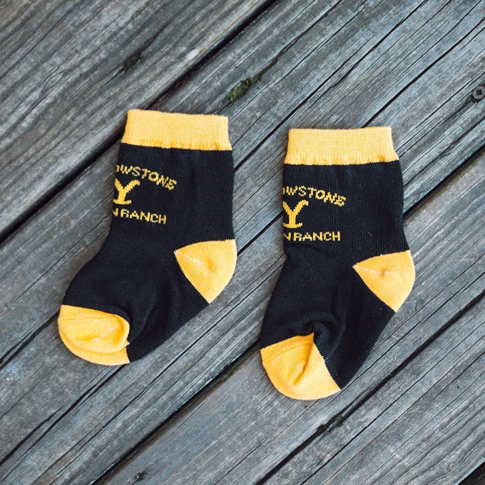 هذه الجوارب للأطفال بشعار يلوستون هي إضافة رائعة لأسلوب طفلك. من استكشاف المزرعة إلى اللعب في المنزل، سيحب طفلك ارتداء هذه الجوارب المريحة للأطفال بشعار يلوستون.