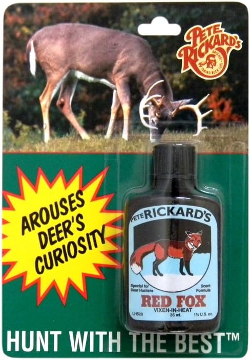 Pete Rickard's - جديد 1 1/4 oz. عطر Red Fox(Vixen In Heat) غطاء معطر LH520 - يغطي رائحة الإنسان ويجعل غزال الذيل الأبيض في متناول اليد. البول العطري الذي تم جمعه من قبل حيواناتهم خلال موسم الجمش. من الصعب الحصول على سر السر ! 1 1/4 أونصة. زجاجة سكويز