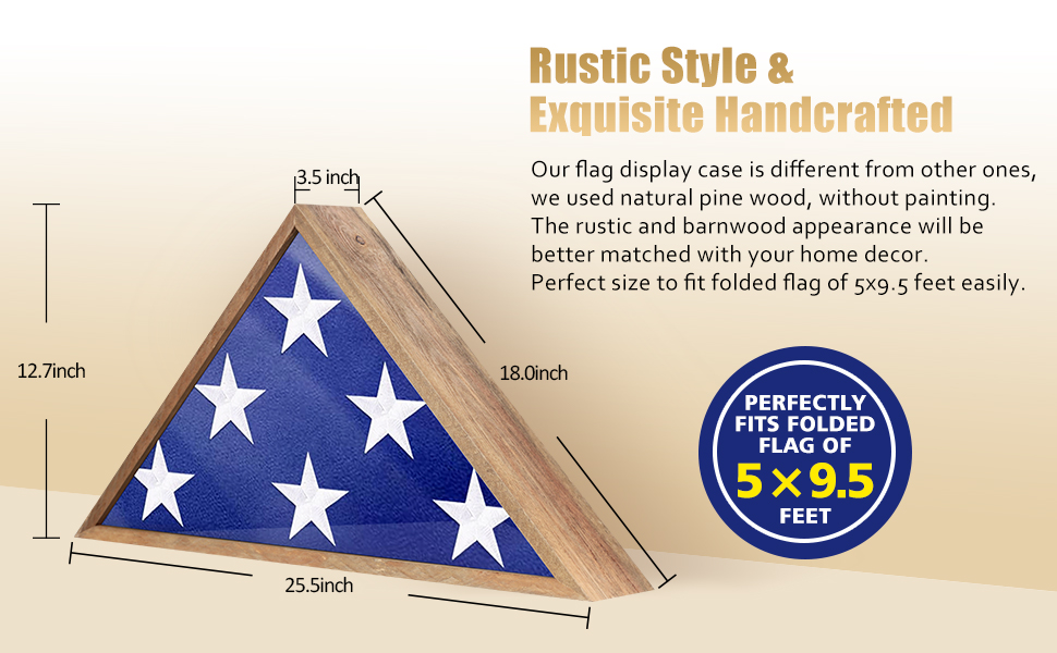 يمكن أن عرض جراب علم روبهوميلي ريفي 9.5x5 بوصة علم جنازة أمريكا المخضرم بكل فخر والشرف. مصنوع من خشب الصنوبر الصلب بنسبة 100% مع حرفة نقع الزيت، جراب عرض العلم بأسلوب ريفي، أفضل بكثير ليتماشى مع ديكور منزلك. داخل علبة ظلال العيون المصنوعة من الفلانيل الأسود بجودة رائعة وغير قابلة للانزلاق عند وضعها على الأثاث.