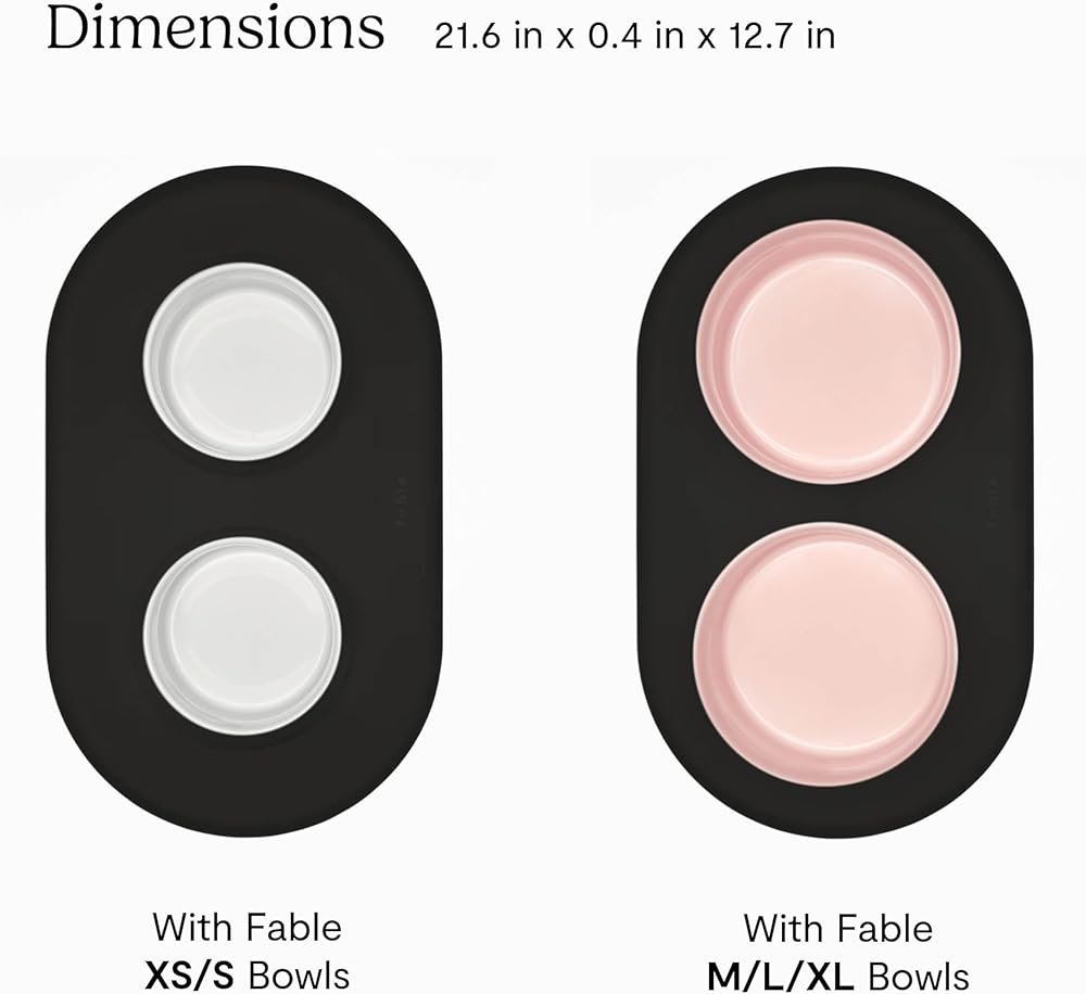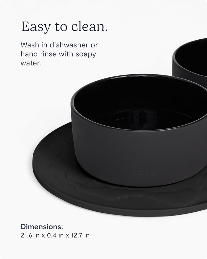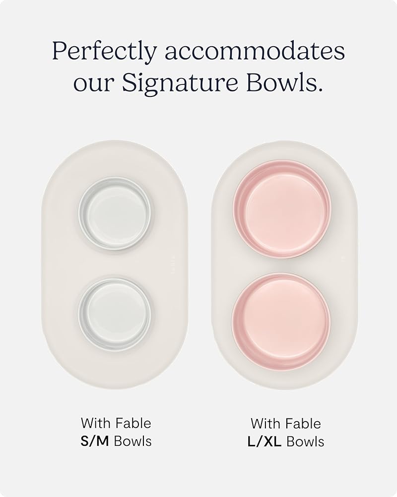 منع الفوضى: حافظ على أرضياتك نظيفة وجافة مع بساط فابل Signature Bowl Mat المثالي للطعام والماء. تضمن حوافها المرتفعة بقاء الطعام والماء على الصينية، بينما تجعل مادة السيليكون من السهل تنظيفها.