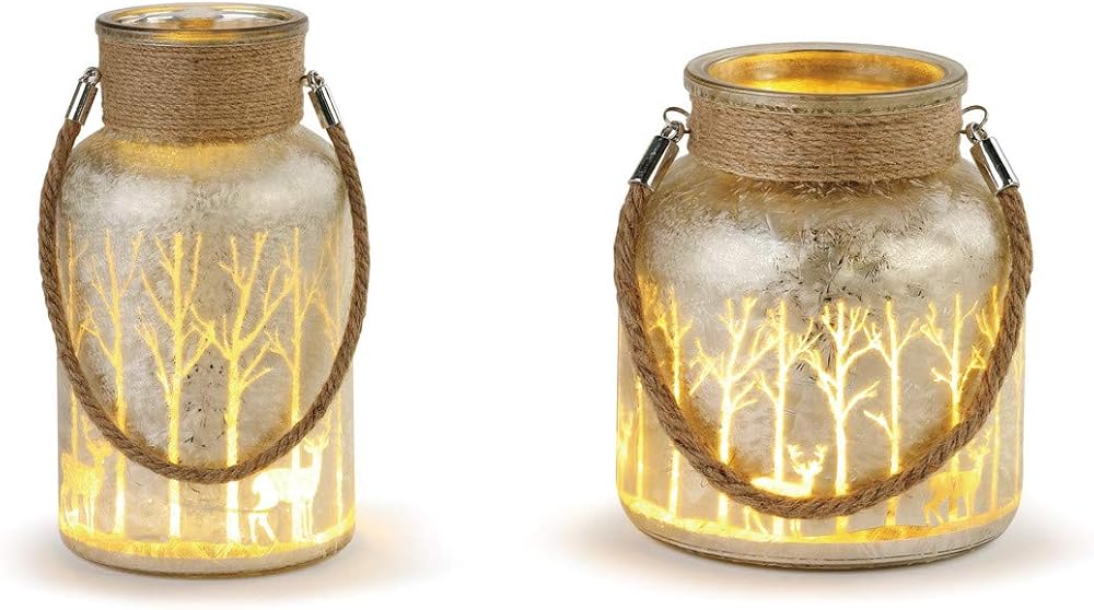 تأتي برطمانات المناظر الطبيعية من ليت وودلاند في مجموعة من 2؛ كل منها لها مشهد الغابات على الجانب وحبل تعليق من الجوت في الأعلى. حوامل مصنوعة من الزجاج وقماش الجوت مع لمسة نهائية بنية طبيعية؛ تتطلب 6 بطاريات AA (غير متضمنة). يبلغ مقاس كل حامل شموع حوالي 10 × 5.5 × 5.5 بوصة. هدية للأشخاص الذين يحبون استخدام موضوعات طبيعية في تزيين الكريسماس. من مجموعة جميلة لعيد الميلاد؛ يتم الشحن في عبوة واقية.