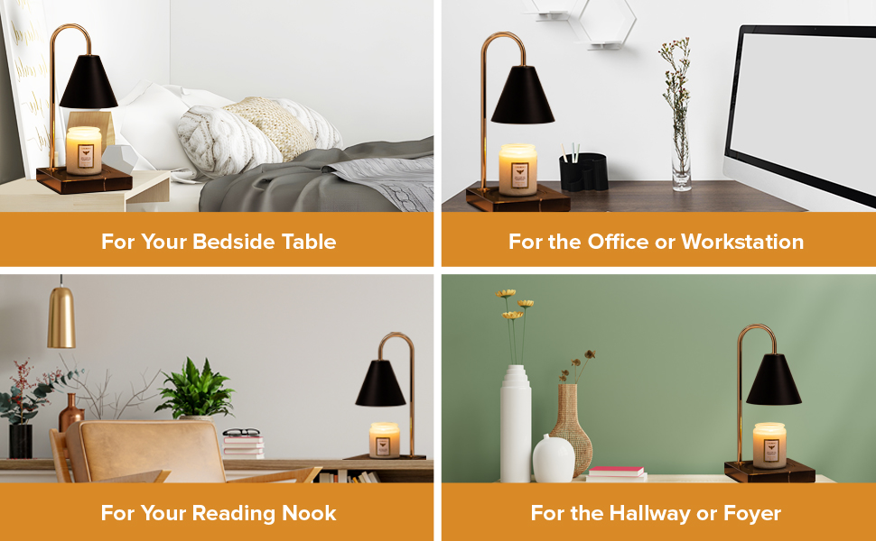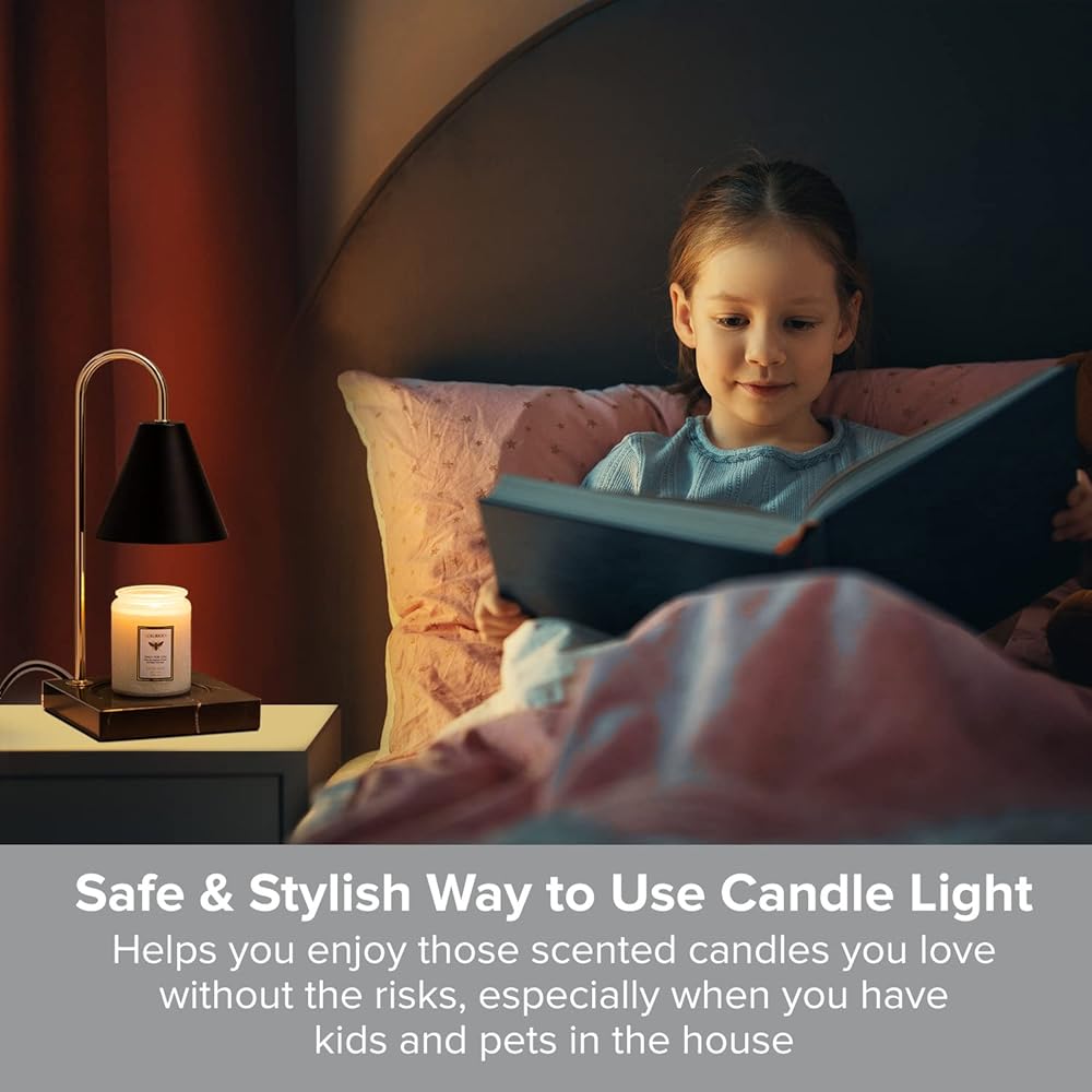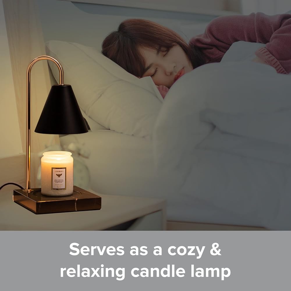 • سخان شموع مريح مع لمبة ومفتاح تعتيم: بينما يذوب الشمع تحت الحرارة الدافئة لفانوس الشمعة هذا، فإنه يعمل أيضًا كمصباح شمعة مريح ومريح. استخدم هذا السخان الكهربائي المحمول للشموع على طاولة السرير أو المكتب أو غرفة المعيشة حيث يمكنك بسهولة ضبط سطوعه من خلال أداة التعتيم المدمجة.
