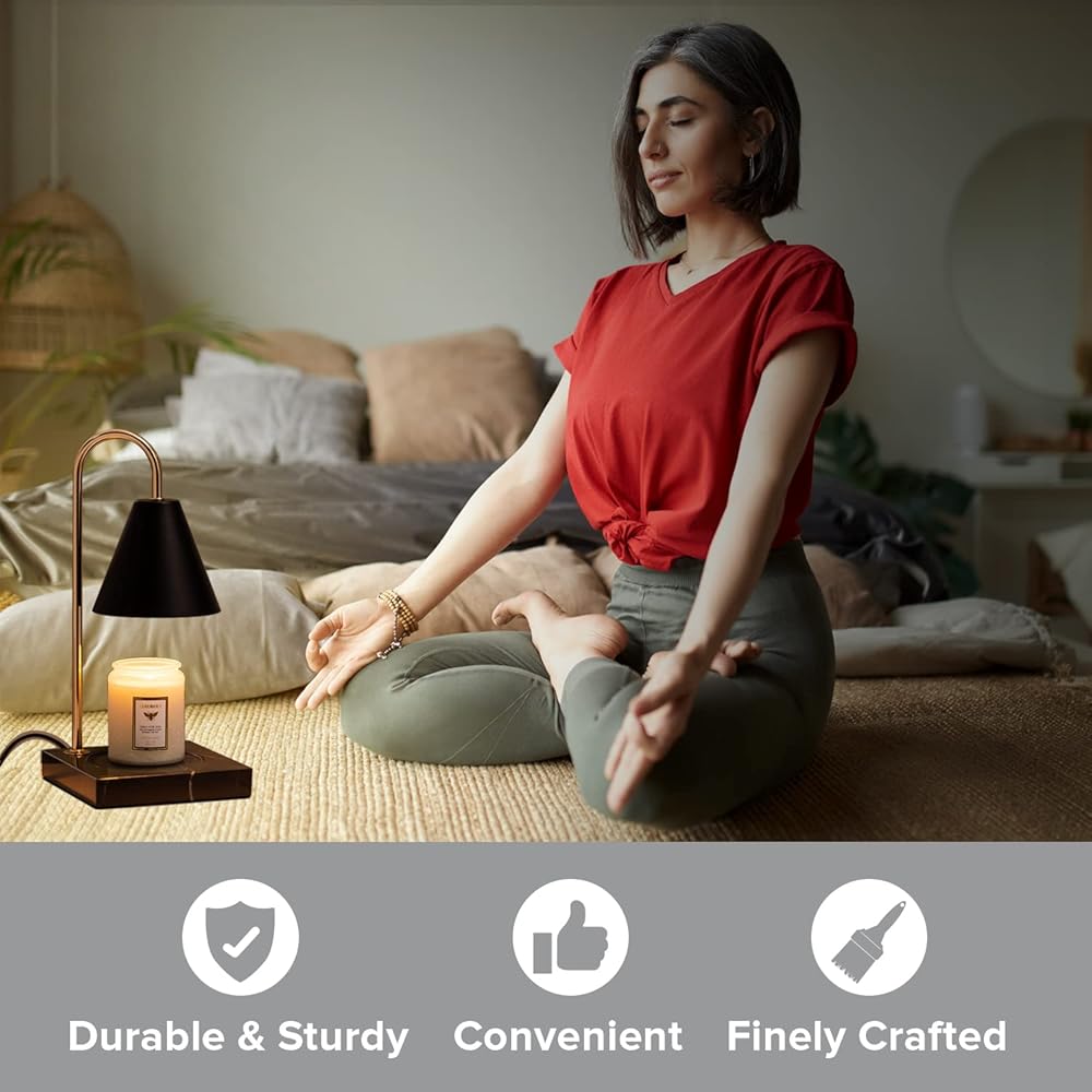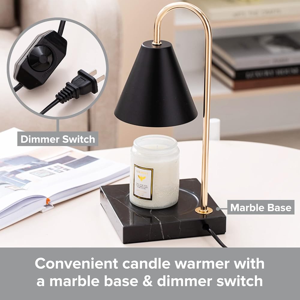 سخان الشموع - مصباح شمعة أنيق مع مفتاح خافت ومصباح إضاءة - سخان شمع الشمع لـ 3 شموع فتيل وجرار شموع - وصل سخان الشمع - حامل شموع أسود بقاعدة رخامية سوداء (عبوة واحدة)