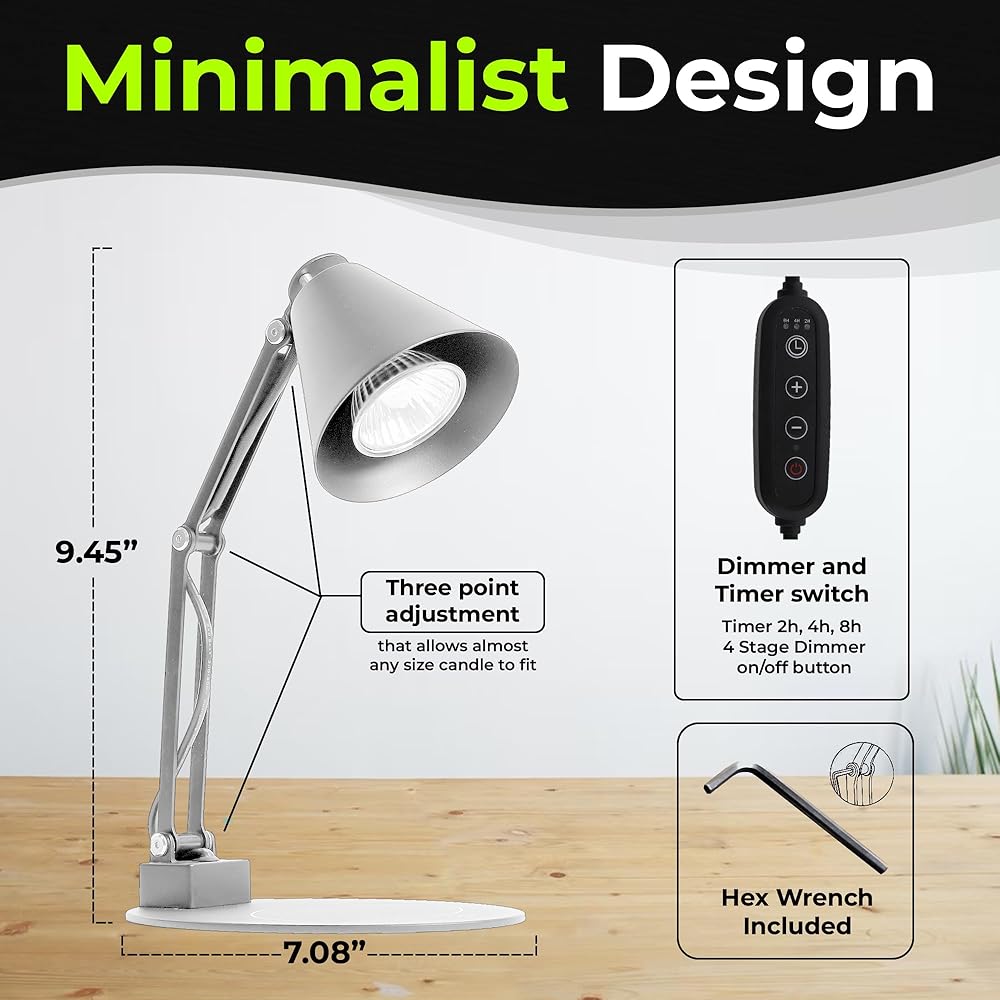 [Easy to operate and Adjust] LumiCandle's candle heater offers a 3 point adjustment feature to help fit many candles sizes. Adjust the lamp from the base, stem, and lamp shade to get the best fit for your favorite candle. Use the 4 stage dimmer to adjust the melting speed of your candle and 2h/4h/8h timer to turn off the candles warmer worry free.