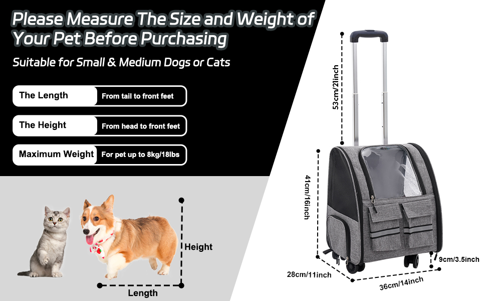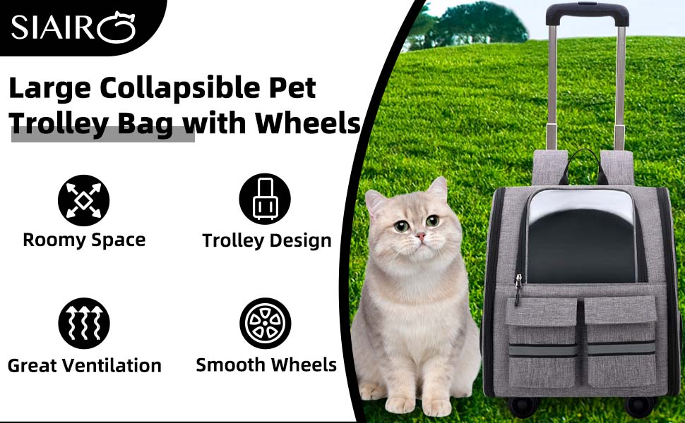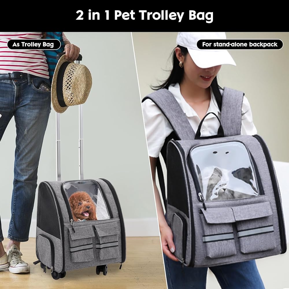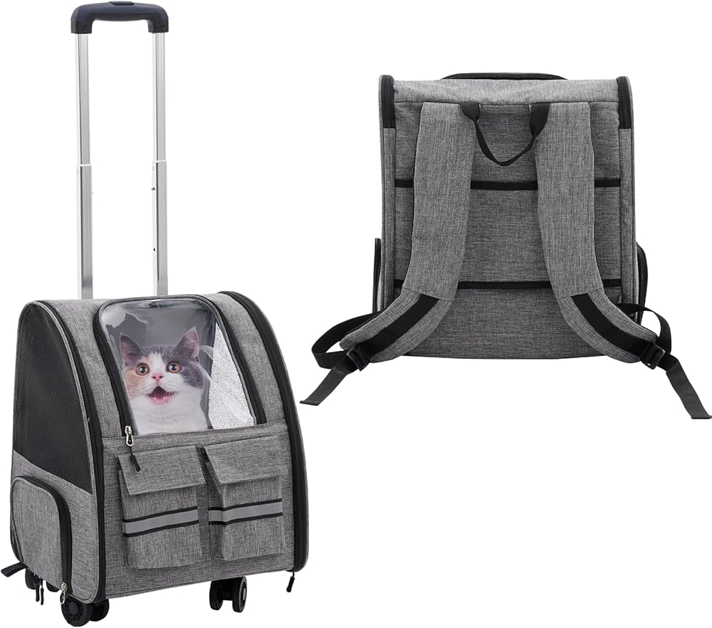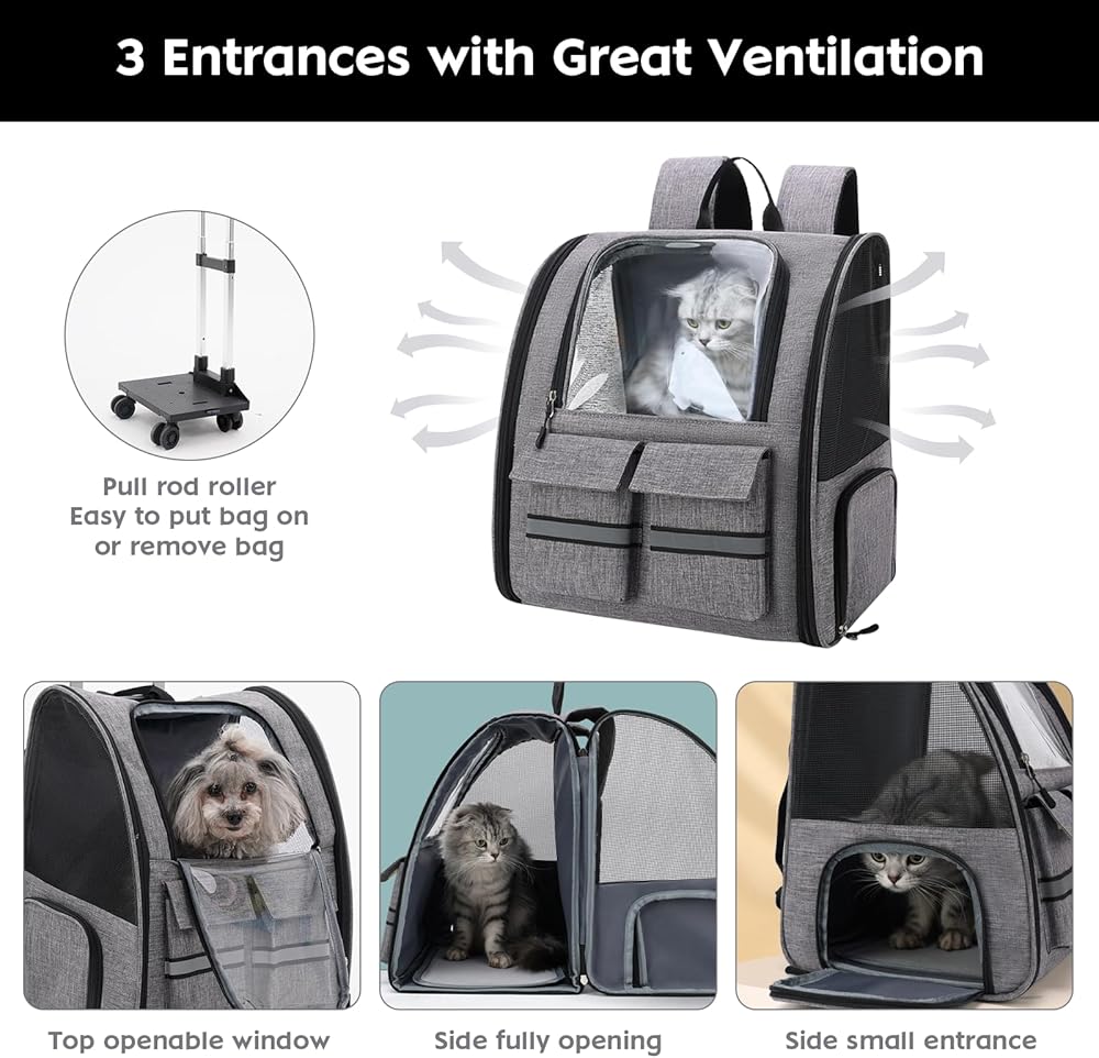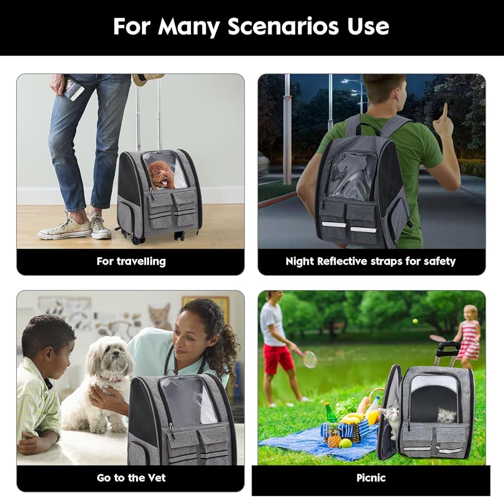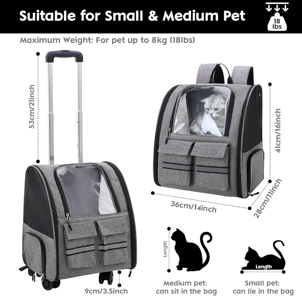 شنطة سفر للحيوانات الاليفة مزودة بعجلات، شنطة ظهر قابلة للطي والفصل، شنطة ظهر متعددة الوظائف للحيوانات الاليفة مع 4 عجلات، شنطة سفر جيدة التهوية للقطط والجراء