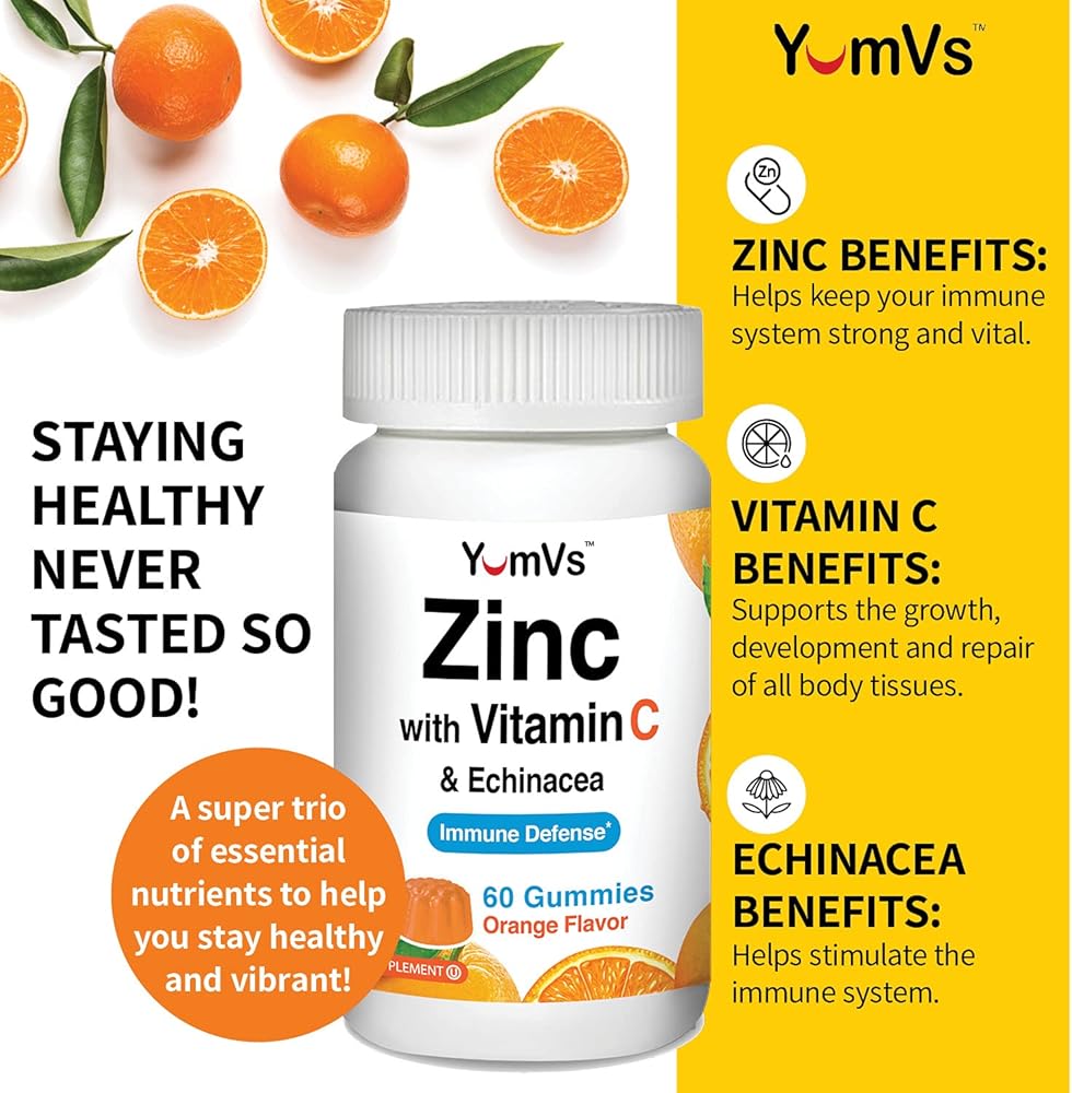 ZINC GUMMIES Zinc + Vitamin C gummies for adults are essential in boosting nutrition, immune support, and maintenance of health. Zinc helps keep your immune system strong and vital, and combines with antioxidant rich Vitamin C to help you stay healthy and vibrant!