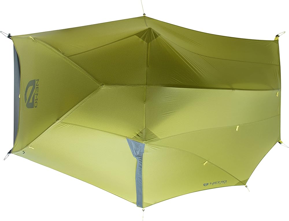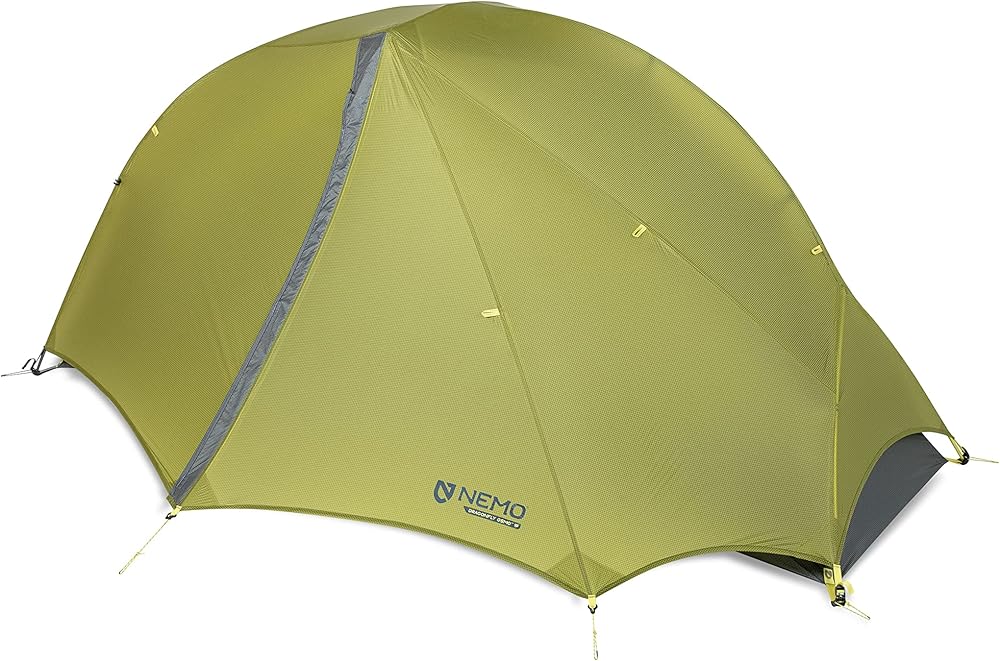Dragonfly OSMO offers an ideal balance of weight and livability in a freestanding tent, and it's now made with NEMO's proprietary OSMO fabric for enhanced performance and sustainability. Several years in the making, our OSMO 100% recycled composite fabric is PFAS-free, repels water 4x longer, and stretches 3x less when wet — all while boasting a 20% increase in strength compared to similar fabrics. Dragonfly OSMO features generously sized doors and asymmetrical vestibules for easy entry and access to bulkier gear. Inside, a gear loft and gear pockets keep belongings neatly stored and out of the way, while an overhead Nightlight Pocket casts headlamp light with a warm, even glow. Best-in-class, durable Y stakes and Jake's Foot pole clips are included to make the pitching process even smoother and more secure. Our updated Divvy Cube stuff sack allows for easily splitting the weight with a partner and stows more efficiently in your pack. Backed by NEMO's Lifetime Warranty, the feature-packed, ultralight Dragonfly OSMO soars above the competition.