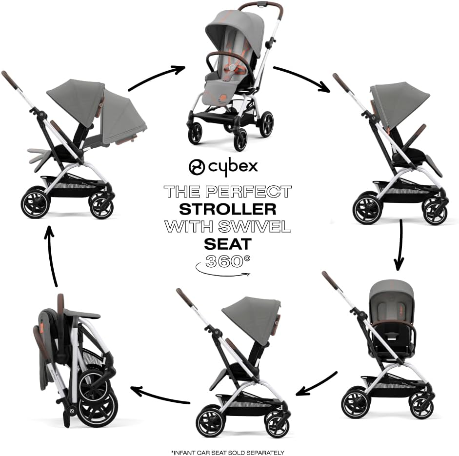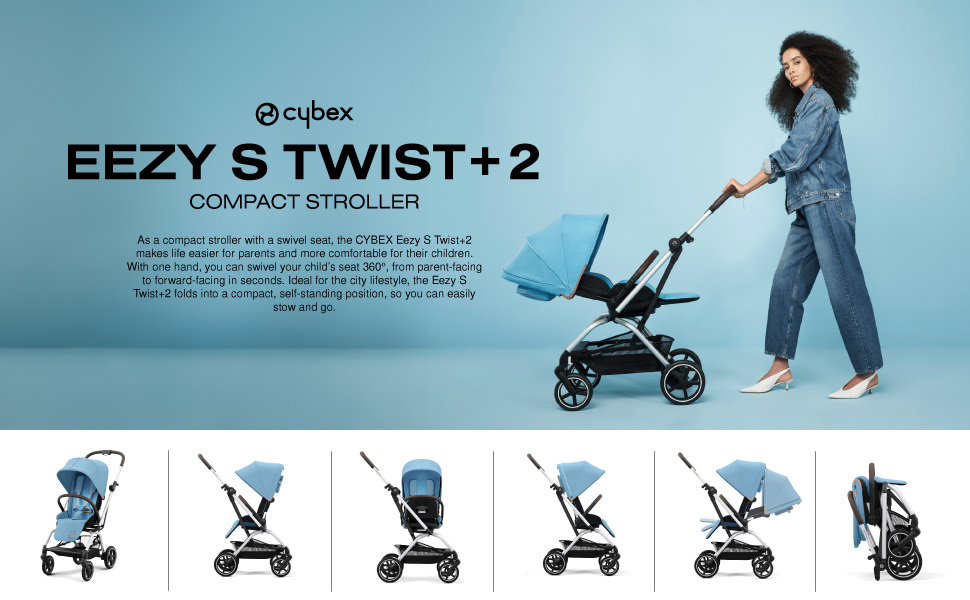As a compact stroller with a swivel seat, the CYBEX Eezy S Twist+2 makes life easier for parents and more comfortable for their children. With one hand, you can swivel your child's seat 360°, from parent-facing to forward-facing in seconds. Ideal for the city lifestyle, the Eezy S Twist+2 folds into a compact, self-standing position, so you can easily stow and go. Made with machine washable fabrics, this stroller also includes a zipped back pocket to access your essentials as well as car seat adapters, a cup holder, rain cover, and bumper bar. CYBEX is the world leader in child safety and makes award-winning car seats, baby carriers, kids furniture and strollers that are not only safe but perfectly suited for today's urban lifestyles.