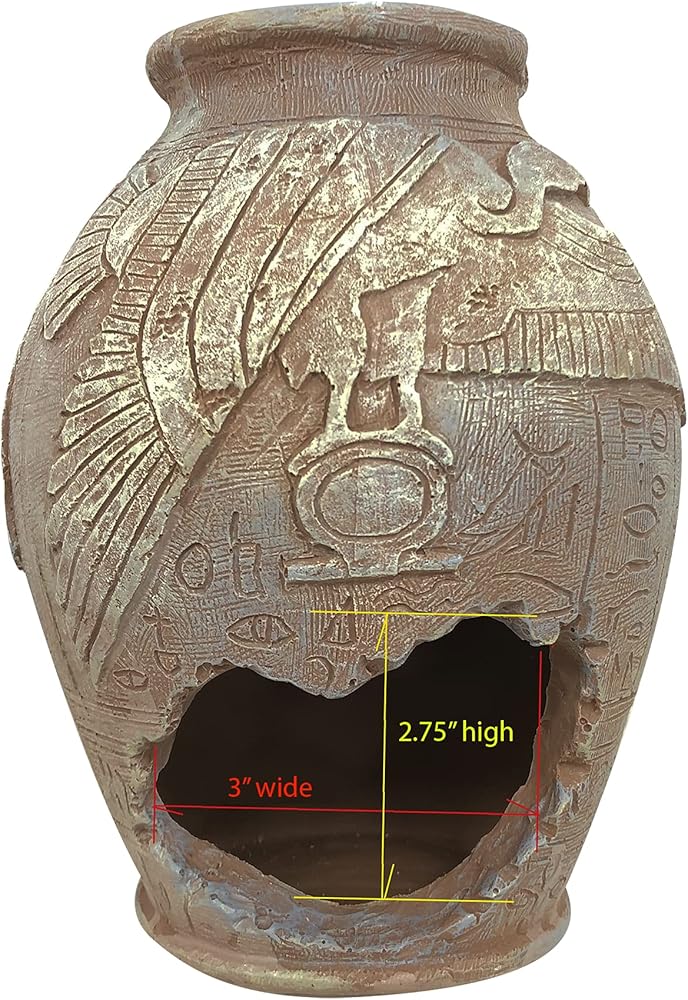 مخبأ الصيد: ديكور حوض السمك ليس مجرد قطعة ديكور، ولكنها تخدم غرضًا مهمًا أيضًا! الثقوب والممرات داخل المزهرية تثبت أنها مخبأ رائع لأسماك صغيرة الحجم حيث يمكنهم إخفاء أو وضع البيض. تقلل من إجهاد الأسماك من خلال توفير المأوى.