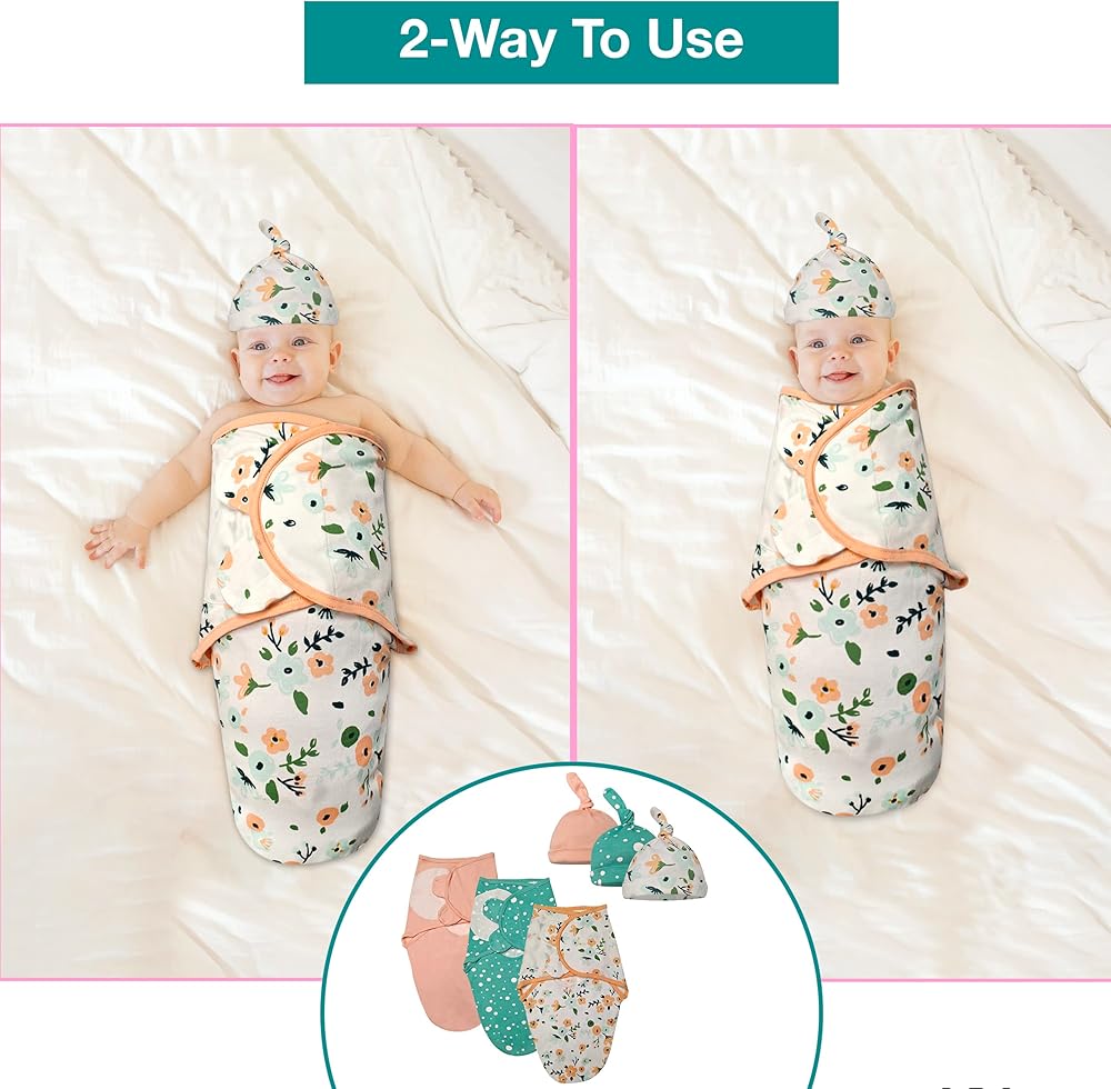 هدايا مثالية - يمكن استخدام جميع المواسم مع مجموعة قماط الأطفال والبطانيات الفريدة من نوعها، والتي تتضمن 3 عبوات من لفافات وقبعات الأطفال. بطانيات قماط الأطفال من شركة Mutualproducts تمثل هدايا رائعة لحفل استقبال المولود الجديد للأمهات الحوامل. بالنسبة للآباء الجدد، تعتبر هذه القماط من العناصر الأساسية في سجل الأطفال.