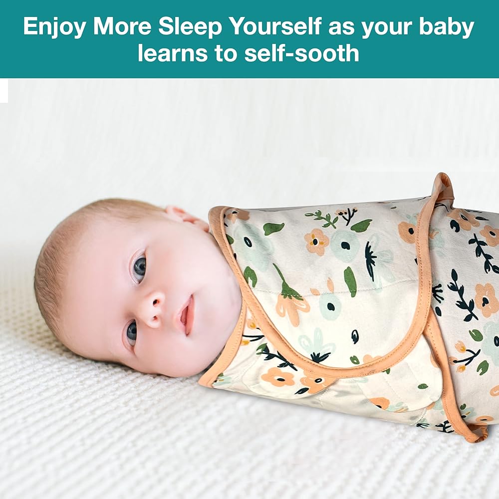 ملاءمة قابلة للتعديل - بفضل ألسنة التثبيت الذاتي القابلة للتعديل، فإن قماط الأطفال الفاخرة الخاصة بنا تحيط بحديثي الولادة أو الرضيع بشكل مريح في كيس نوم آمن مقاس واحد يناسب الجميع. لن يتمكن طفلك من التملص من القماط، كما هو الحال في كثير من الأحيان مع بطانيات القماط التقليدية، ولن تضطر إلى حفظ أي تقنيات محددة في القماط. مناسب للرضع حديثي الولادة، من 6 إلى 13 رطلاً، من 0 إلى 3 أشهر.