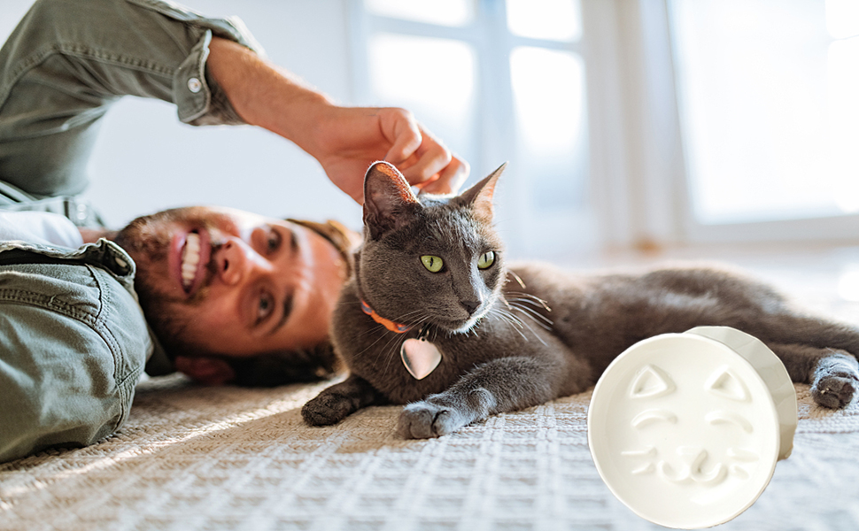 【وعاء للقطط من السيراميك البطيء】تصميم نمط طعام بطيء لوجه القطة النابضة بالحياة، وتحسين عادات الأكل السريعة، وإبطاء سرعة تناول القطط، وتعزيز الهضم، وتجنب الانتفاخ والإسهال والسمنة.