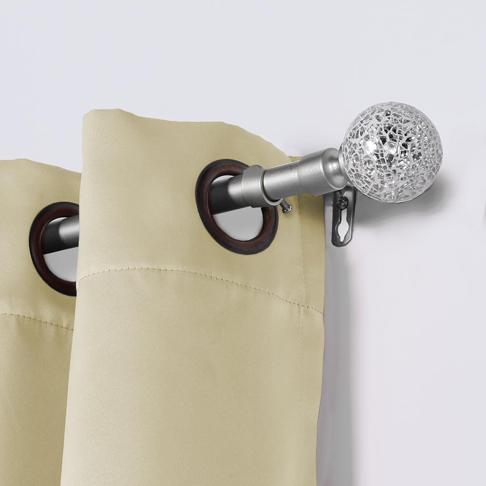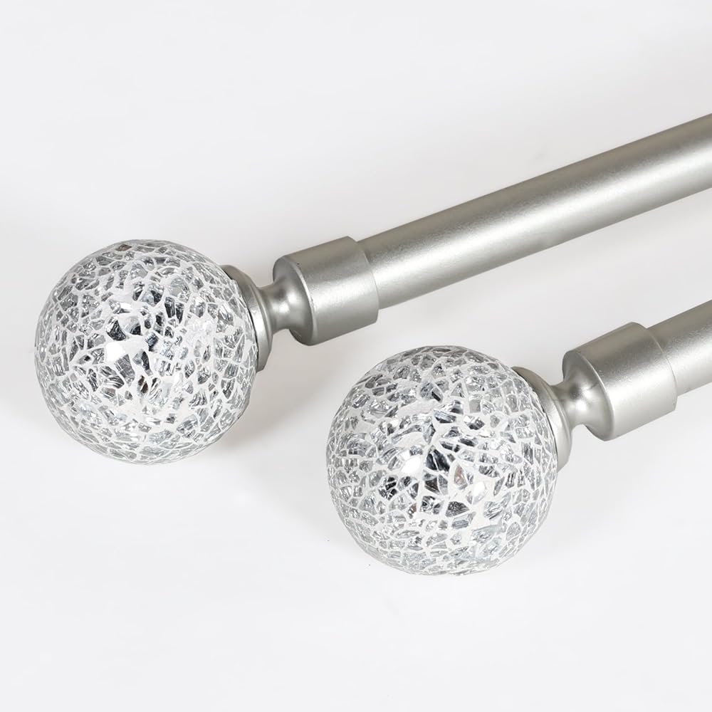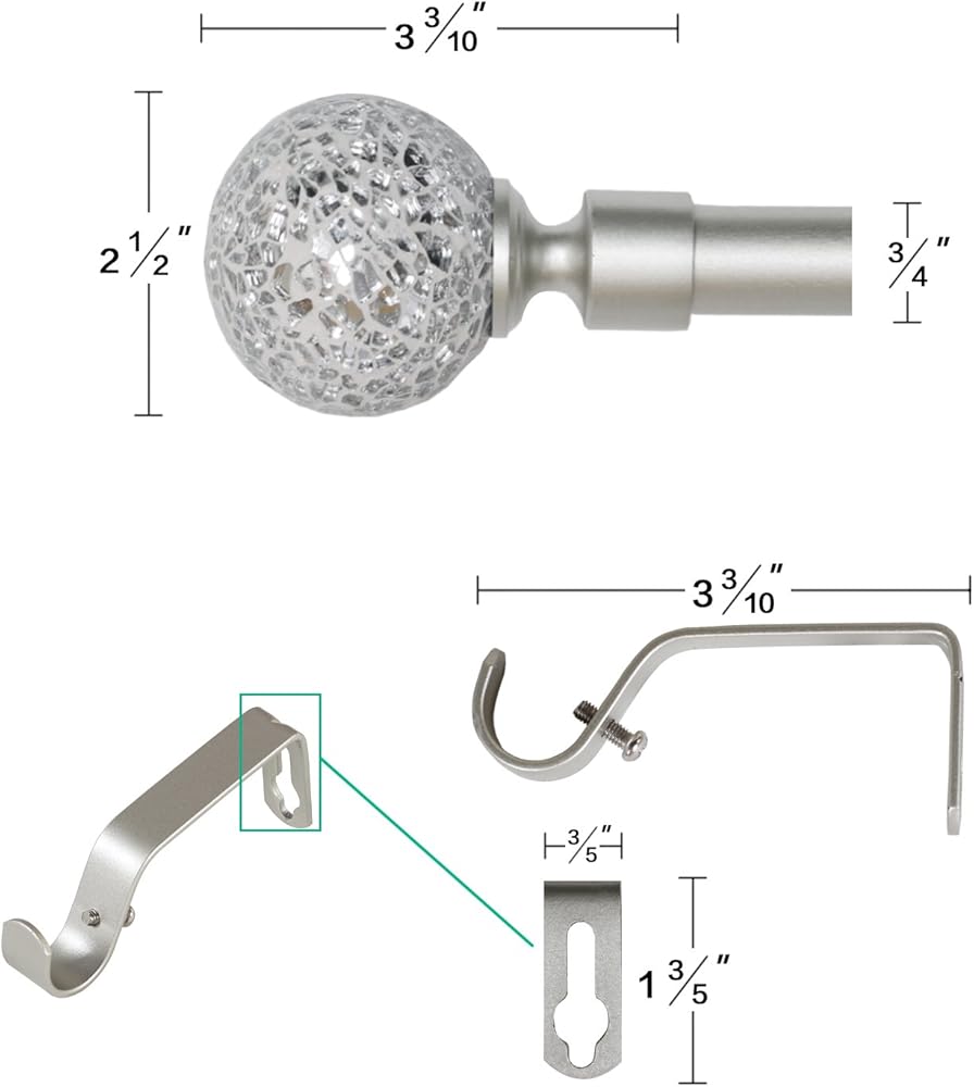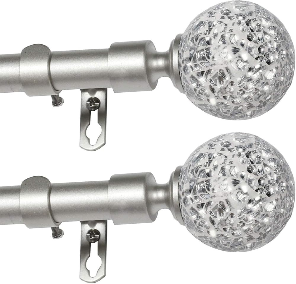 مجموعة قضبان ستائر النوافذ الفيروزية المكونة من قطعتين للنوافذ من 66 إلى 120 بوصة، مجموعة قضبان ستارة مفردة من النيكل المزخرفة قابلة للتعديل مع تيجان كروية من الفسيفساء الزجاجية من النيكل، قطر 3/4 بوصة، لمسة نهائية من النيكل، عبوتان
