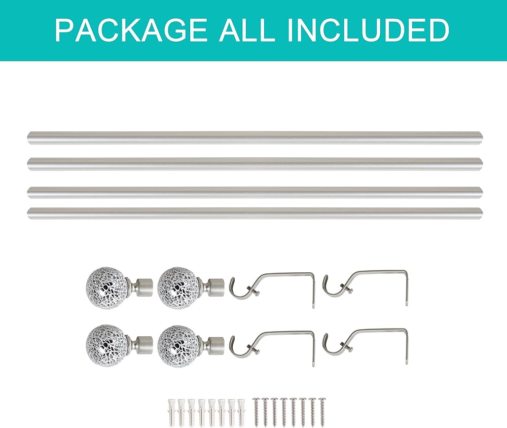 المادة: مصنوعة من معدن/فولاذ متين على القضبان وإكسسوارات الأجهزة، ونهايات من الراتنج. يدوم طويلاً وقوي بما يكفي ليتحمل الستائر الثقيلة التي يصل وزنها إلى 15 رطلاً