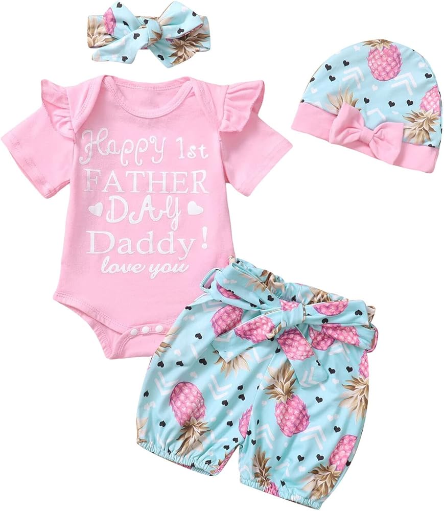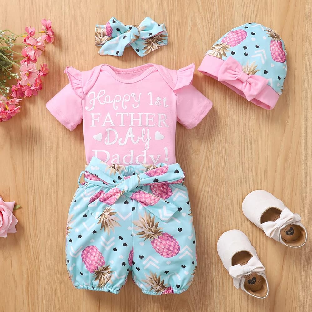 - زي عيد الأب للفتيات حديثي الولادة. تشمل العبوة: 1 × بدلة + 1 × شورت + 1 × عصابة رأس + 1 × قبعة