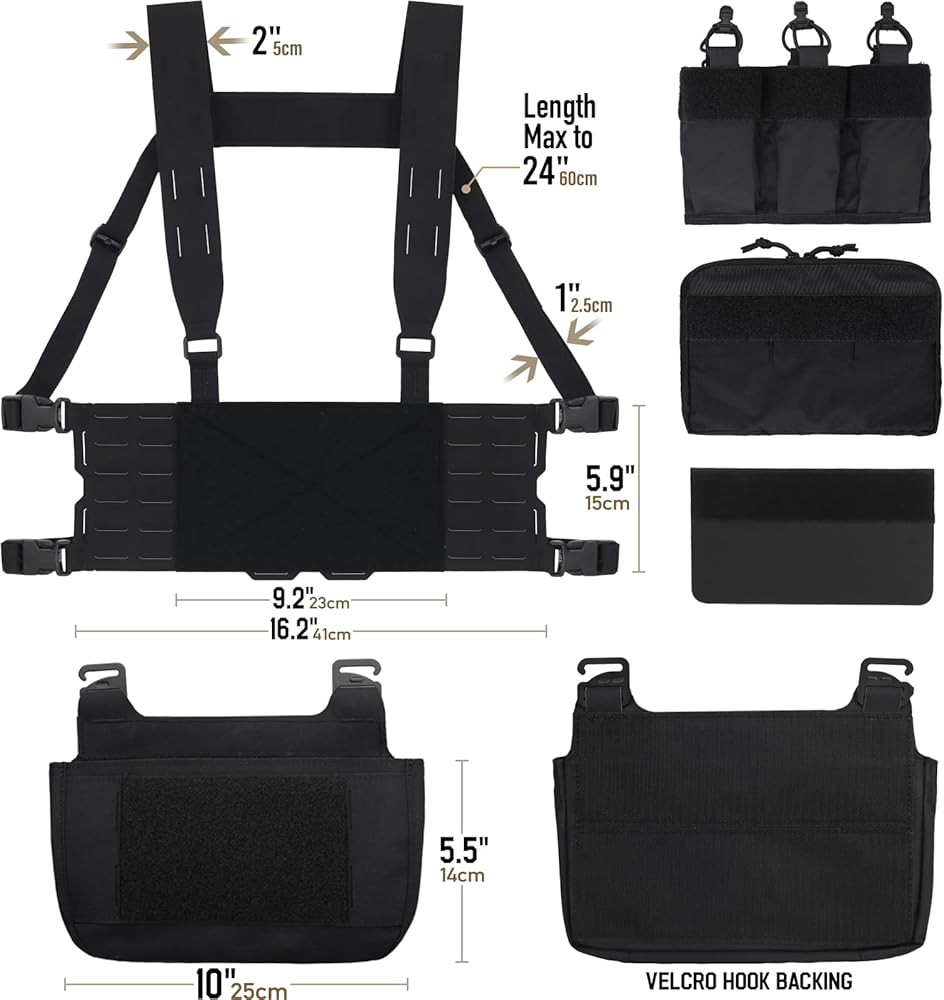 Front Hook-H-Loop fields(6.1"L x 3.9"H/15.5cm*10cm) outside of the pouch for attaching ID and other patches. Velcro Loop fiel on back cross strap for identification patches.