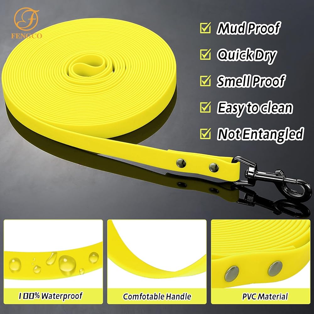 【High quality Soft Pvc Material】:Made of environmentally friendly rubber material, flexible and comfortable.Flex poly coated nylon strap, durable and tough made the waterproof dog lead, strong tensile resistance can carry reach 600 lbf pull force.