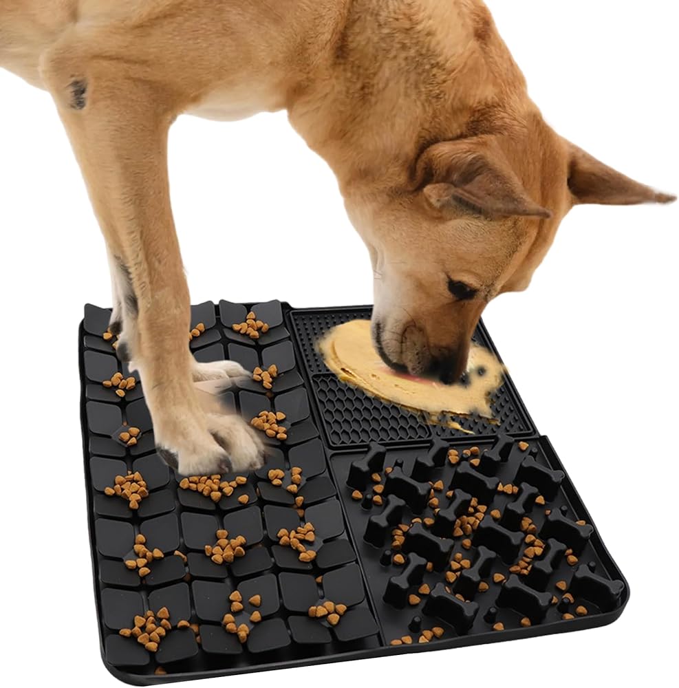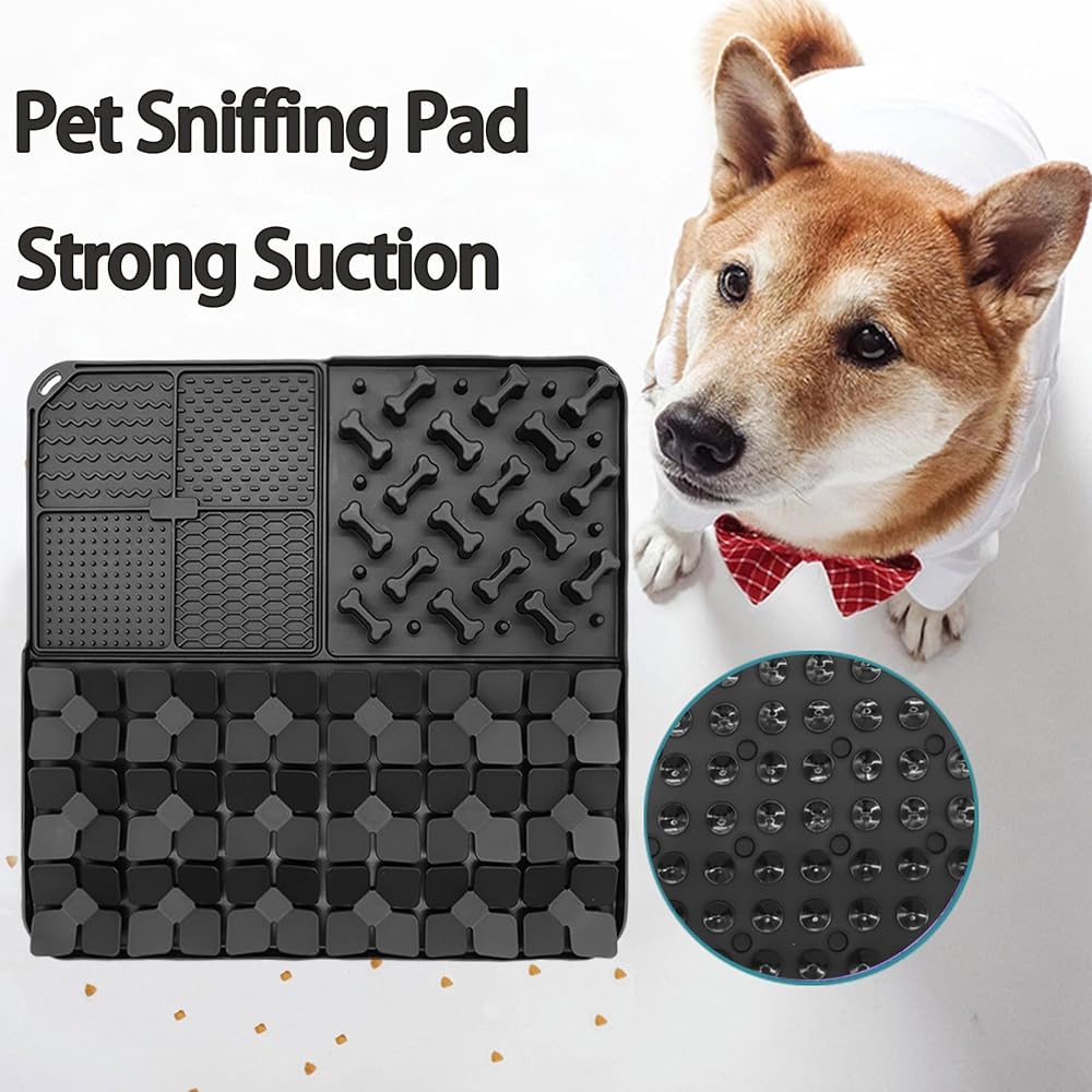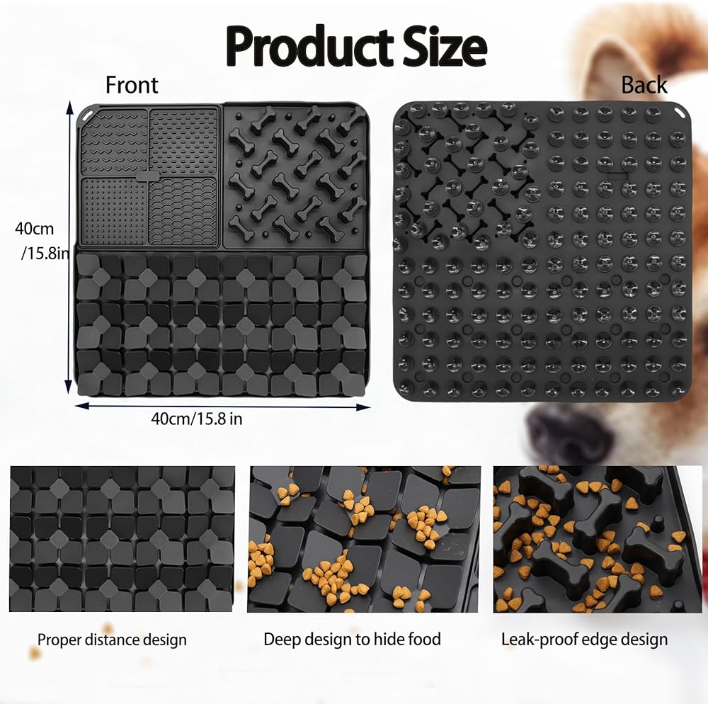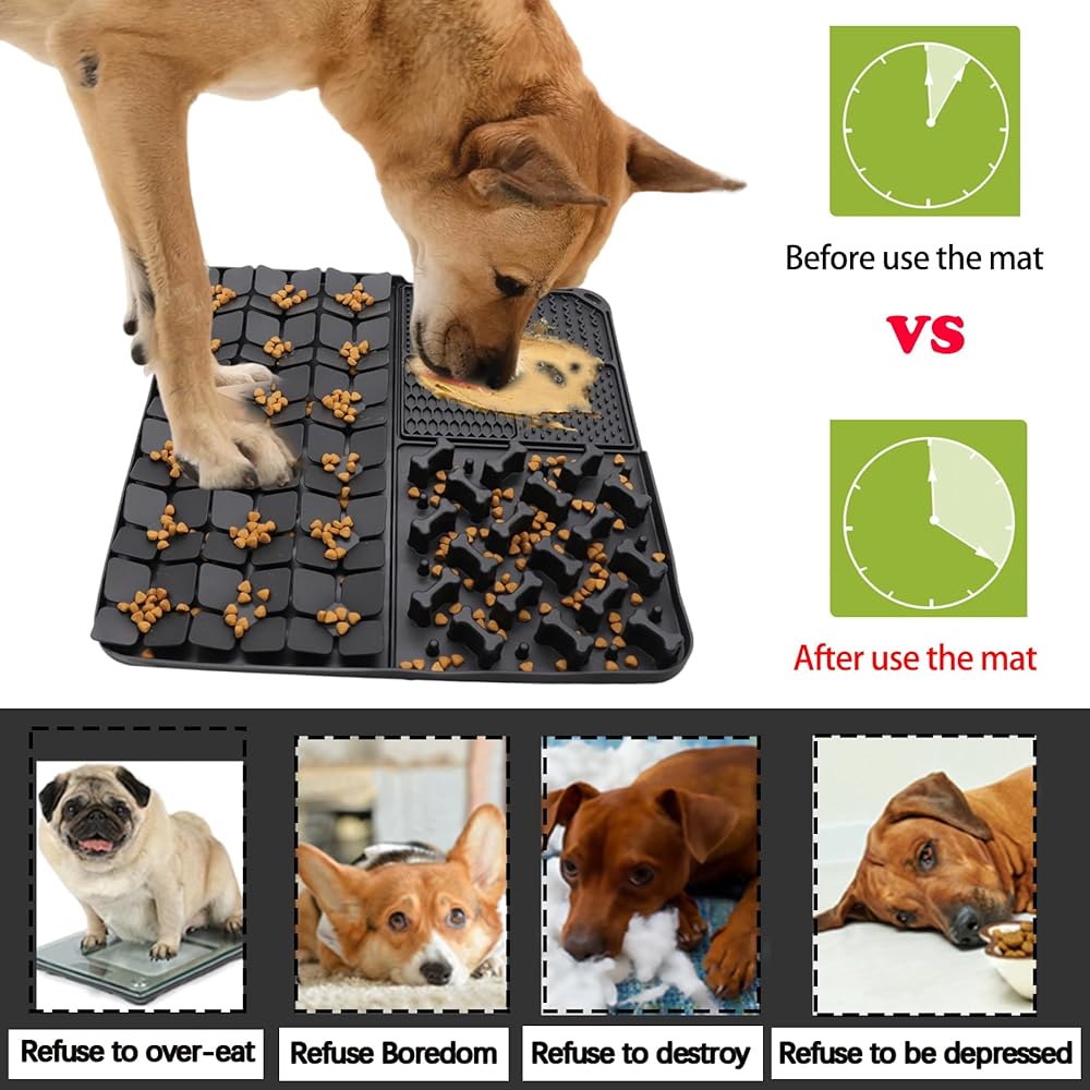 🐶【تصميم 3 في 1، المزيد من العناية لكلبك】-- تم تصميم بساط تغذية الكلاب هذا بثلاث مناطق وظيفية مختلفة: منطقة الشم ومنطقة اللعق ومنطقة تناول الطعام البطيئة. تعمل منطقة الشم على تدريب حاسة الشم وتشجع الطبيعة. مهارات البحث عن الطعام. تستهلك منطقة اللعق طاقتها، وتقلل من القلق، وتخفف التوتر. تقلل منطقة تناول الطعام البطيئة من سرعة تناول الحيوانات الأليفة وإطالة وقت الوجبة، وتحسن مشاكل الهضم الصحية. سيكون كلبك الجميل أكثر سعادة وصحة بعد الحصول على السجادة.