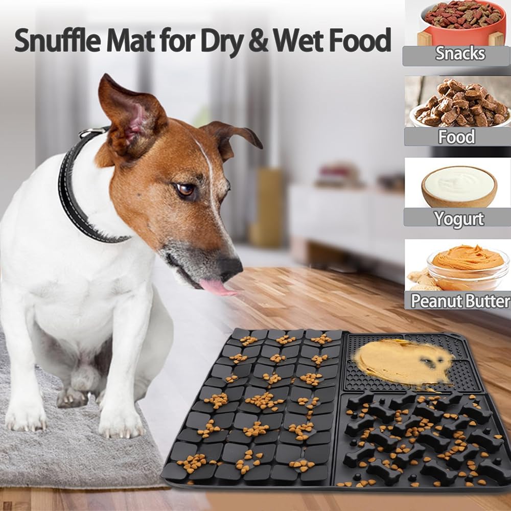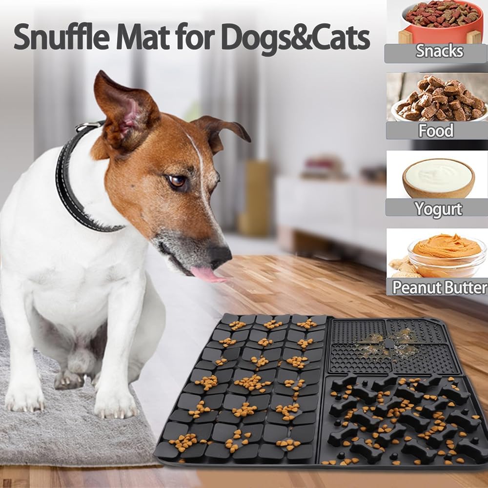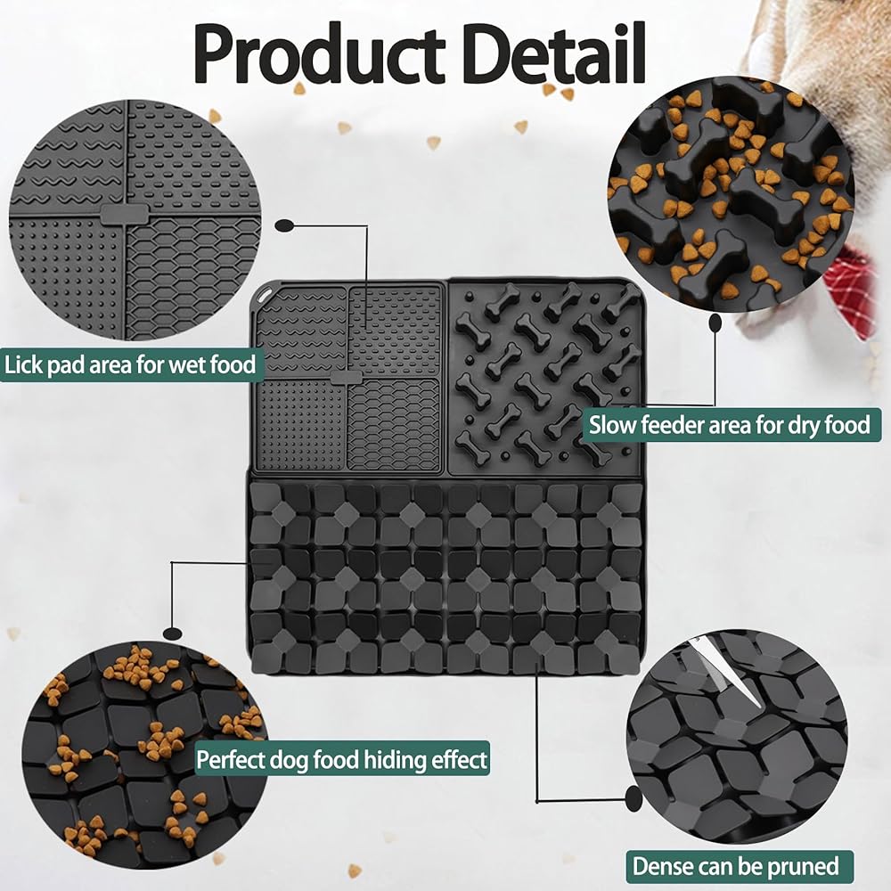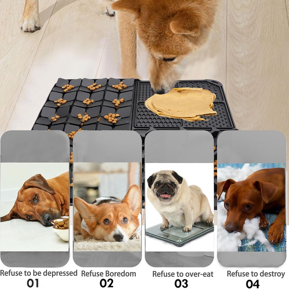 🐶【تصميم 3 في 1، المزيد من العناية لكلبك】-- تم تصميم بساط تغذية الكلاب هذا بثلاث مناطق وظيفية مختلفة: منطقة الشم ومنطقة اللعق ومنطقة تناول الطعام البطيئة. تعمل منطقة الشم على تدريب حاسة الشم وتشجع الطبيعة. مهارات البحث عن الطعام. تستهلك منطقة اللعق طاقتها، وتقلل من القلق، وتخفف التوتر. تقلل منطقة تناول الطعام البطيئة من سرعة تناول الحيوانات الأليفة وإطالة وقت الوجبة، وتحسن مشاكل الهضم الصحية. سيكون كلبك الجميل أكثر سعادة وصحة بعد الحصول على السجادة.