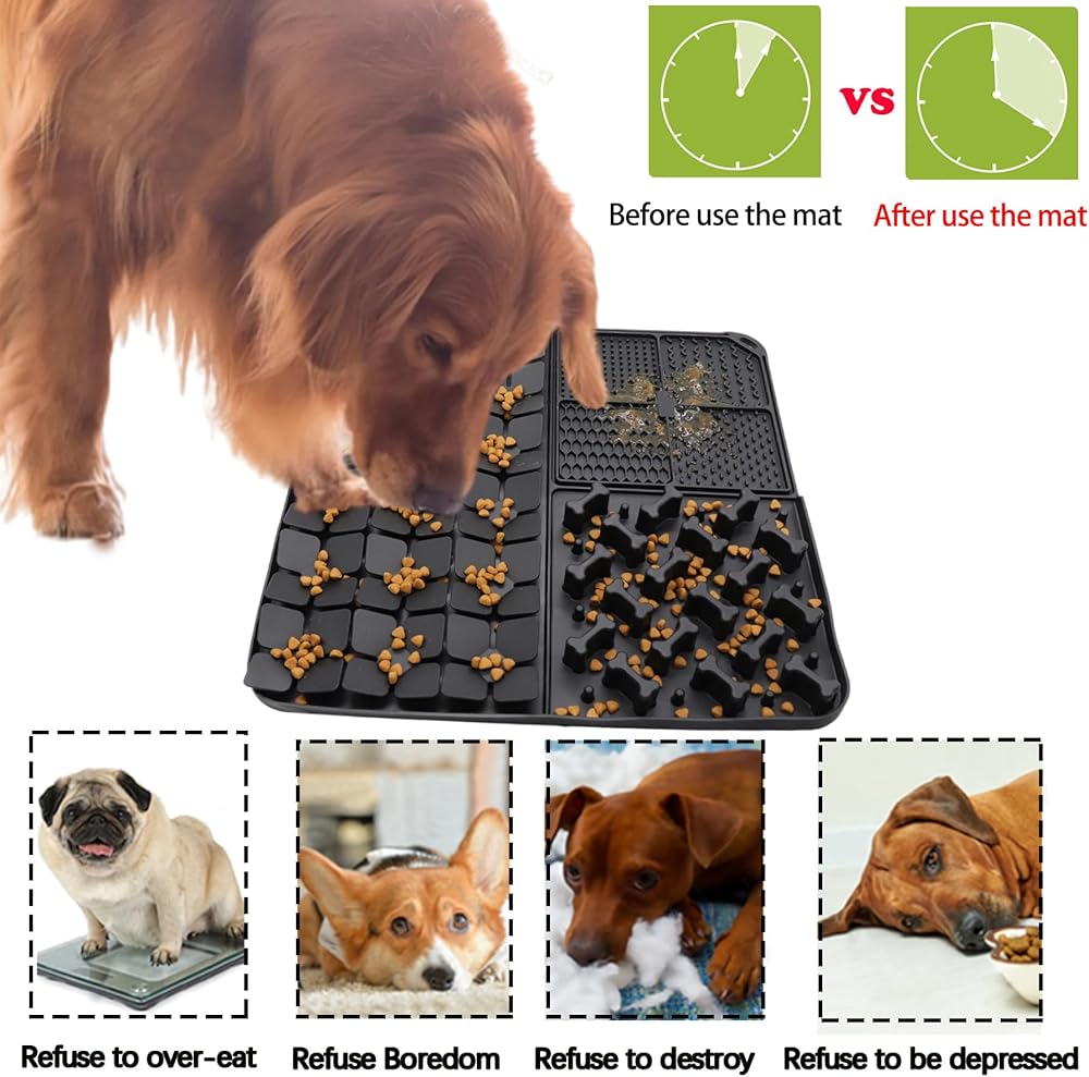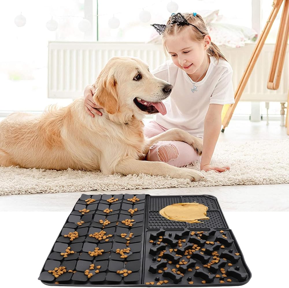 حصيرة سيليكون للكلاب، حصيرة تغذية بطيئة لعق مع أكواب شفط للأكل البطيء، تشجع مهارة البحث عن الطعام الطبيعية، وتخفف التوتر، حصيرة استنشاق الحيوانات الأليفة للقطط الصغيرة والمتوسطة والكبيرة (أسود)