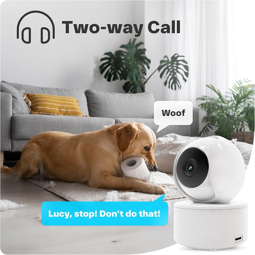 [2-Way Audio] The smart camera is equipped with two-way audio, allowing you to both listen and speak. With this feature you can calm your dog/cat from anywhere in the world.