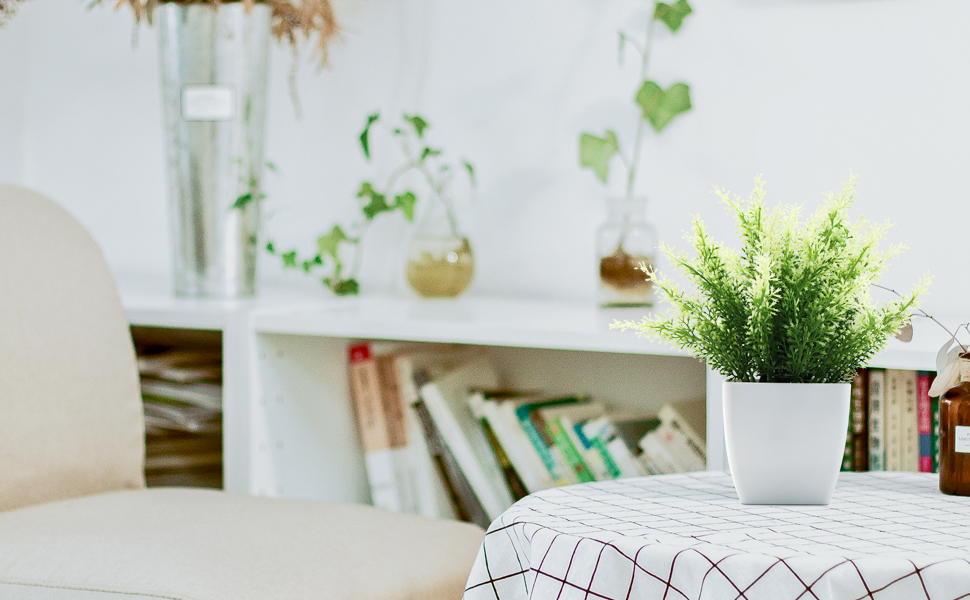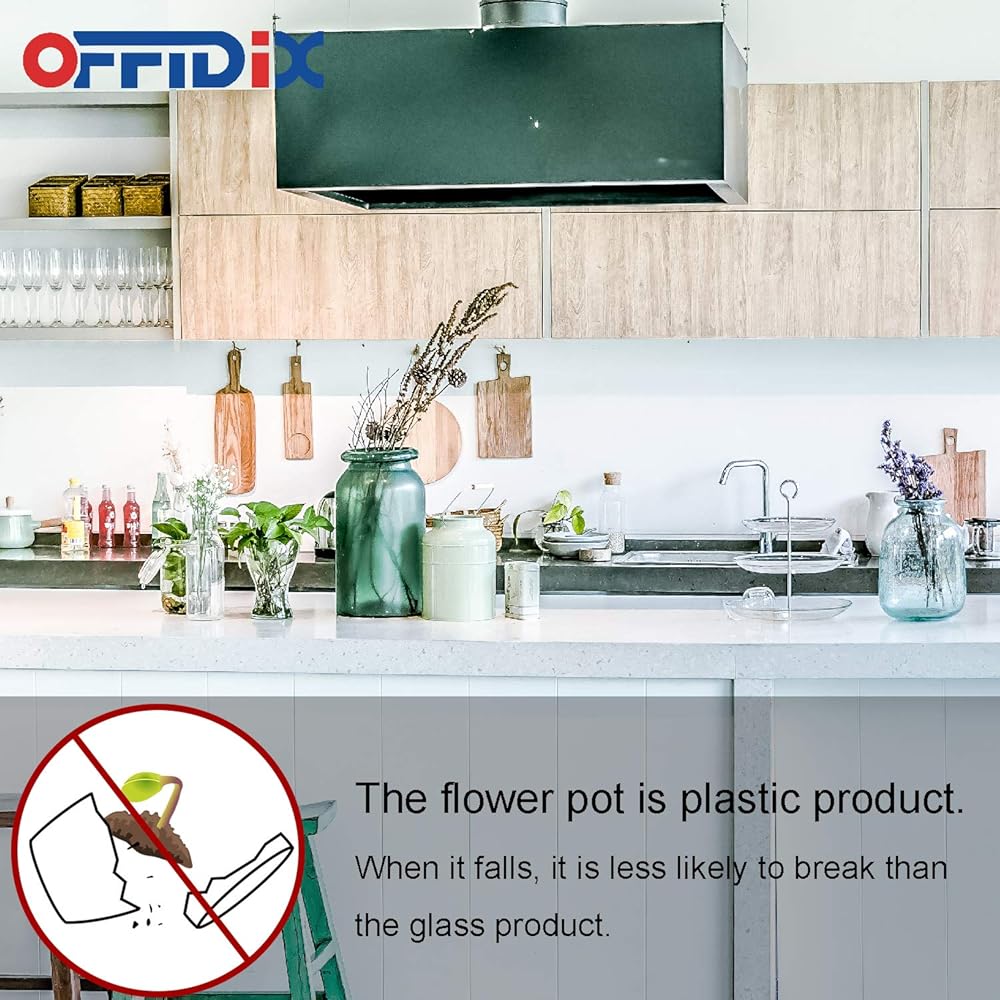 المواد: مصنوعة من البلاستيك الصديق للبيئة، وغير سام وغير ضار، ويفضلها العملاء، وتأتي مع أواني بلاستيكية مربعة بيضاء، قوية ومتينة. نباتات الأصص النابضة بالحياة سهلة التنظيف والعناية.