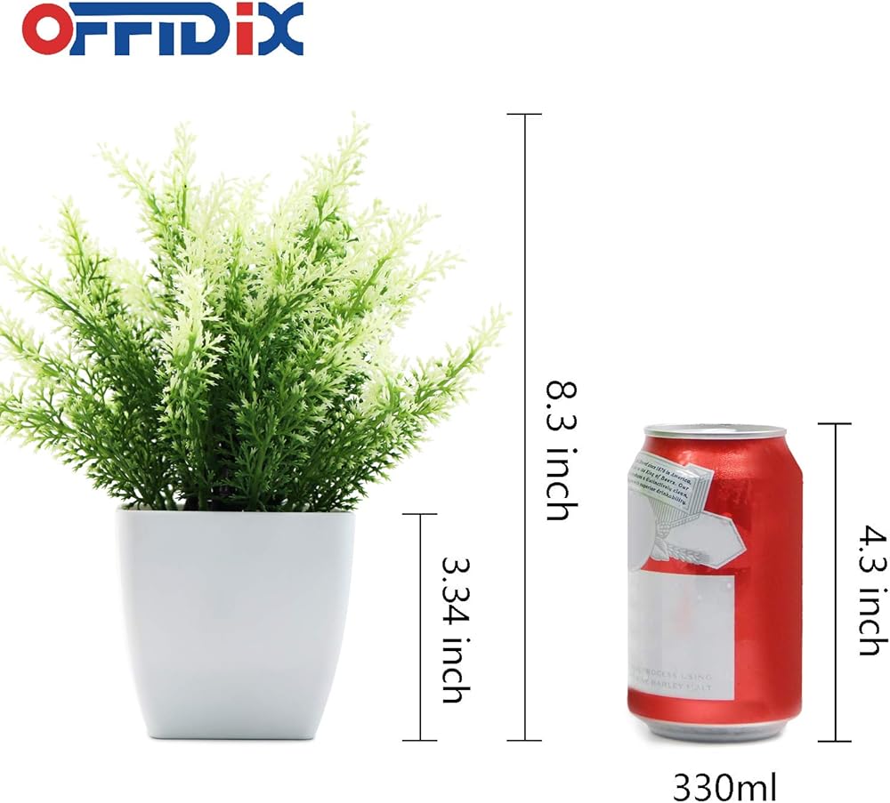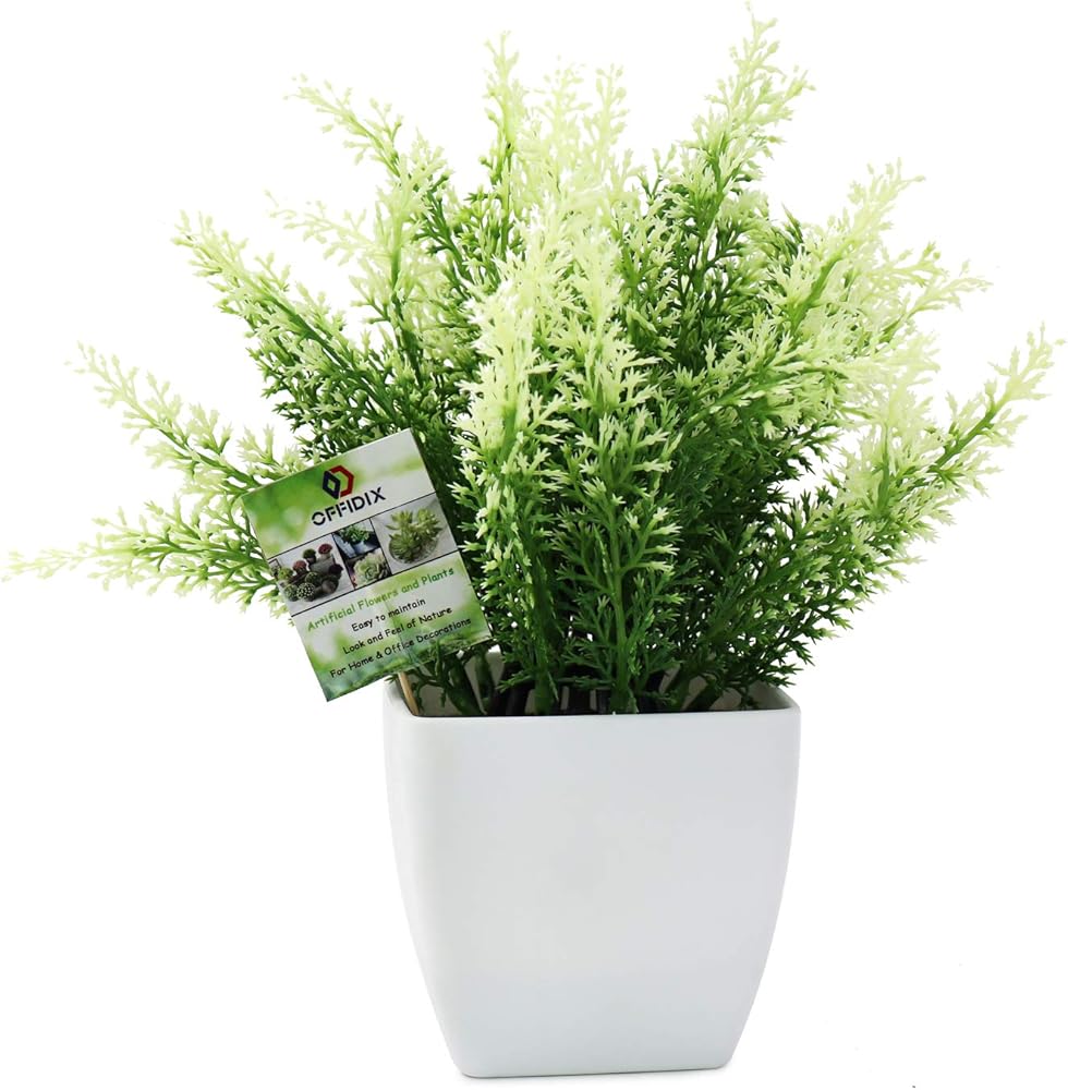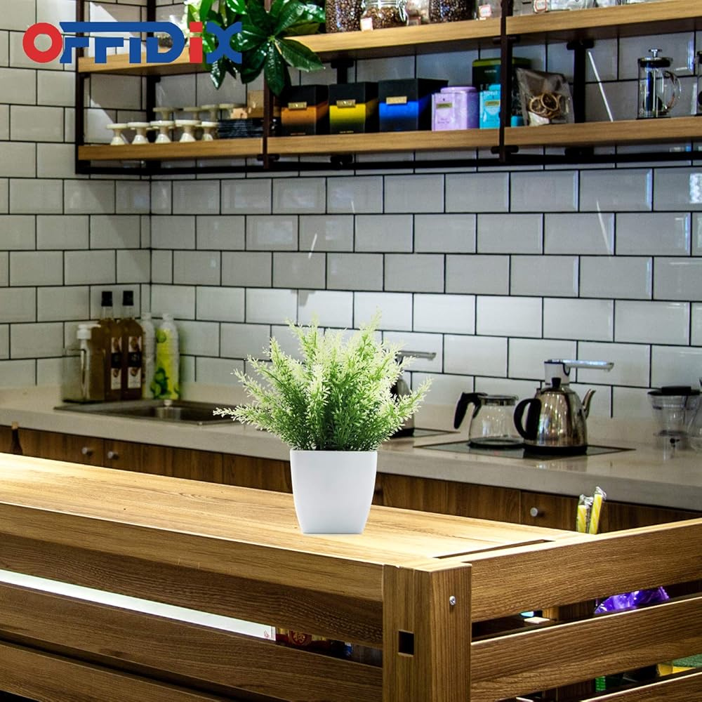 نبات صناعي أخضر من البلاستيك من OFFIDIX، نباتات منزلية صناعية مع مزهرية مربعة بيضاء للمزرعة والمنزل والحديقة والمكتب والفناء والزفاف والديكور الداخلي والخارجي قطعة واحدة